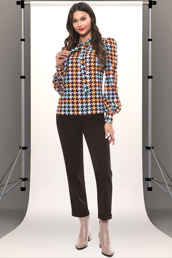 Приталенная блузка с воротником-стойкой и длинными рукавами на манжетах с пуговицами — это элегантный и стильный элемент гардероба, который подходит для разных случаев. Основные характеристики такой б... Показать описаниелузы: Приталенный силуэт который подчеркивает фигуру и создаст аккуратный силуэт. Воротник-стойка: этот тип воротника придаёт блузке строгость и изысканность. Возможность завязать галстук или бант добавляет разнообразия в образ и позволяет сделать его более индивидуальным. Длинные рукава на манжетах: манжеты с пуговицами добавляют элегантности и позволяют регулировать объем рукава, что делает блузку более универсальной. Манжеты также придают дизайну нотку классики. Такую блузку можно сочетать с различными предметами гардероба, такими как юбки, брюки или шорты. Она идеально подходит для офисного стиля, деловых встреч или даже для вечерних мероприятий в сочетании с элегантными аксессуарами. Артикул: бл17041 Цвет: коричневый. Состав: полиэстер 100% Длина изделия: 60-62 см Рекомендуемый уход за изделием: деликатная или ручная стирка при температуре 30 градусов. Не отбеливать, гладить с изнаночной стороны. Цвет изделия на фотографии может отличаться от фактического из-за настройки монитора. Модель: Рост 170, Размер 44.