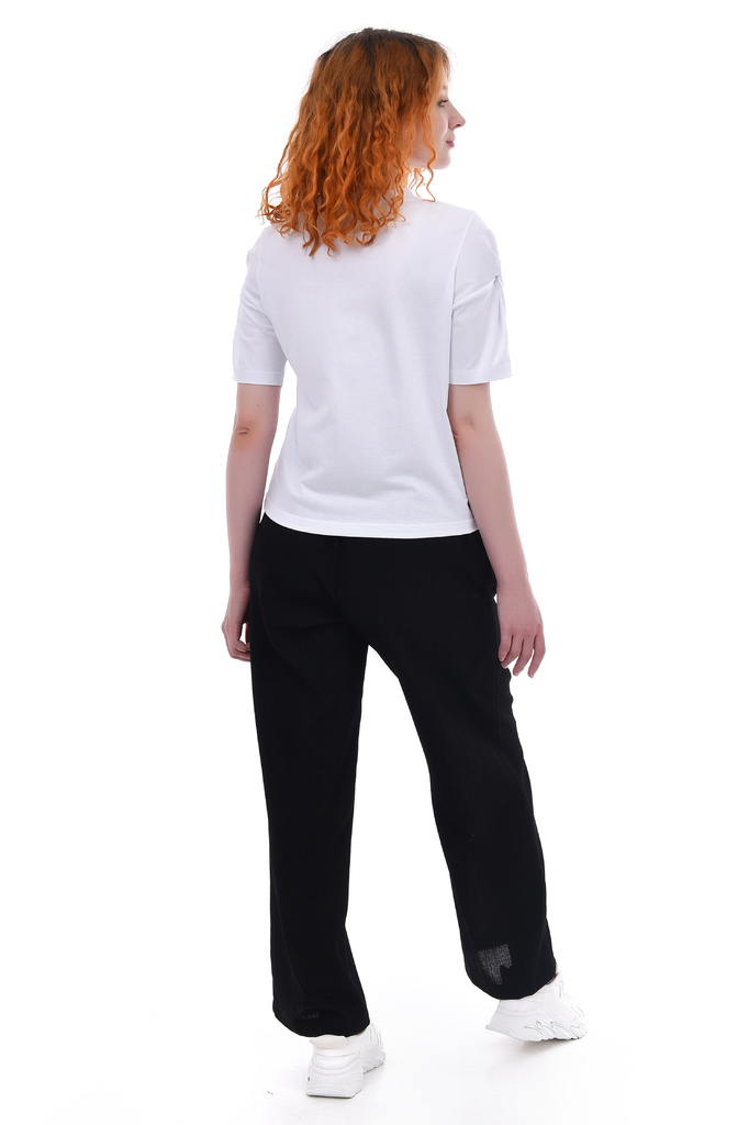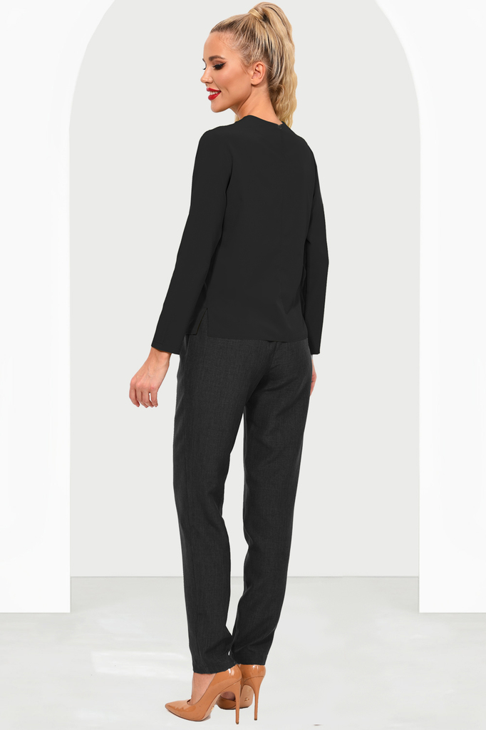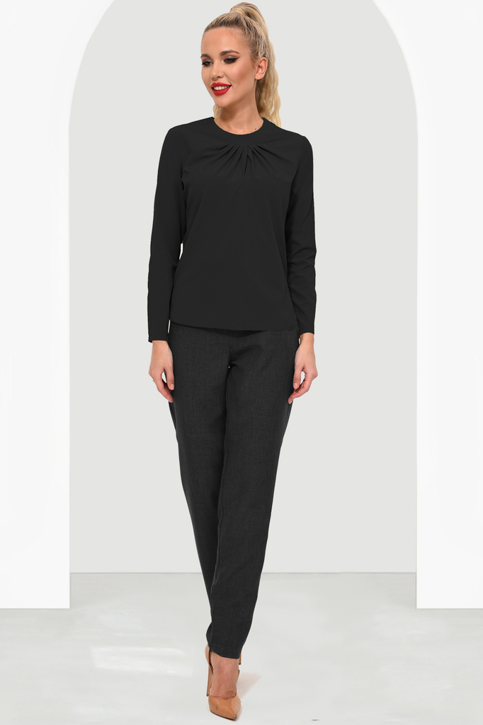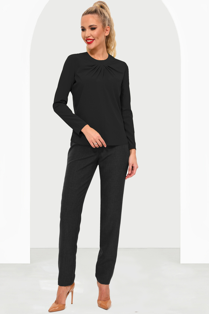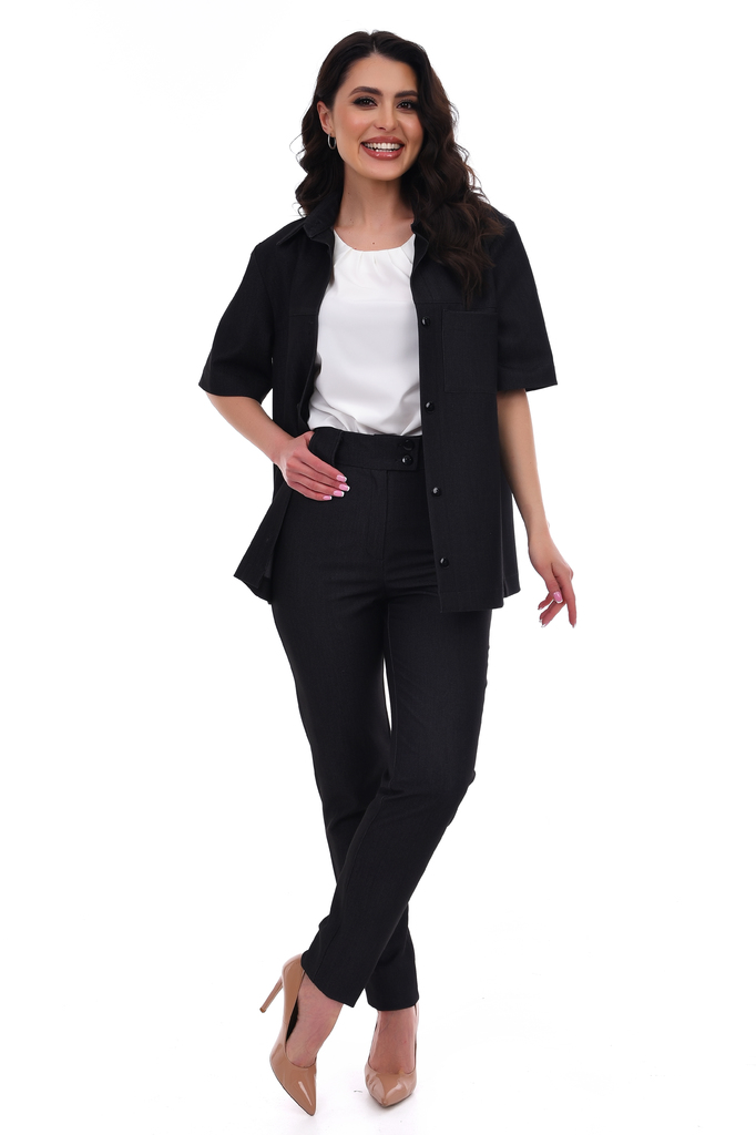 Блузка приталенного силуэта с защипами по горловине, обработанными обтачкой, — это стильный элемент гардероба, который сочетает в себе элегантность и комфорт. Основные характеристики такой блузы: Прит... Показать описаниеаленный силуэт: блузка свободного кроя, приталенная, которая подчеркивает фигуру, создавая женственный силуэт. Защипы на горловине: создают интересный акцент в области шеи, придавая блузке более изысканный и оригинальный вид. Обработка обтачкой краев горловины обеспечивает аккуратный и завершенный вид. Такую блузку можно носить как в повседневной обстановке, так и на более официальных мероприятиях, сочетая с юбками, брюками или джинсами. Она отлично подходит для создания стильных образов как для работы, так и для отдыха. Артикул: бл16901 Цвет: Черный Состав: полиэстер 60%, вискоза 35%, эластан 5%. Длина изделия: 44-48: 56 см, 50-52: 60 см Длина рукава: 44-48: 54,5 см, 50-52: 55 см Рекомендуемый уход за изделием: деликатная или ручная стирка при температуре 30 градусов. Не отбеливать, гладить с изнаночной стороны. Цвет изделия на фотографии может отличаться от фактического из-за настройки монитора. Модель: Рост 170, Размер 44.