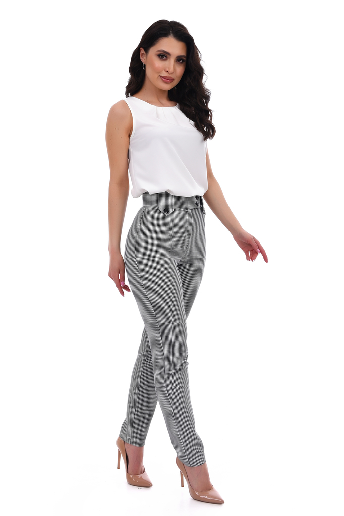Брюки классического кроя, заужены. Модель с высокой посадкой визуально вытягивает силуэт, делая ноги зрительно стройнее и длиннее, Брюки подойдут для повседневного и классического стиля . Широкий пояс... Показать описание, который обеспечит прекрасную посадку на фигуру любого типа. Артикул: бр005/0136 Цвет: черно-белый Узор: гусиная лапка геометрия клетка Ткань: Костюмная Состав: Полиэстер 95%, Эластан 5% Длина изделия: 104см-105см Рекомендуемый уход за изделием деликатная или ручная стирка на 30 градусах.Нельзя отбеливать, утюжить с изнанки. Цвет изделия на фотографии может отличаться от фактического из-за настройки монитора. Модель: Рост 168, Размер 44.