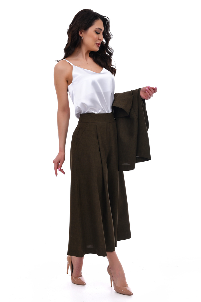 Женские стильные брюки-кюлоты на притачном поясе, сбоку застёгиваются на молнию, придадут Вашему стилю современность и элегантность. Брюки подойдут для повседневного и делового стиля.Идеально сочетают... Показать описаниеся с блузонами и рубашками. Артикул: Бр07417 Цвет: Хаки Ткань: Костюмная Состав: Полиэстер 100% Длина изделия: 82 см Рекомендуемый уход за изделием деликатная или ручная стирка на 30 градусах.Нельзя отбеливать, утюжить с изнанки. Цвет изделия на фотографии может отличаться от фактического из-за настройки монитора. Модель: Рост 168, Размер 44.