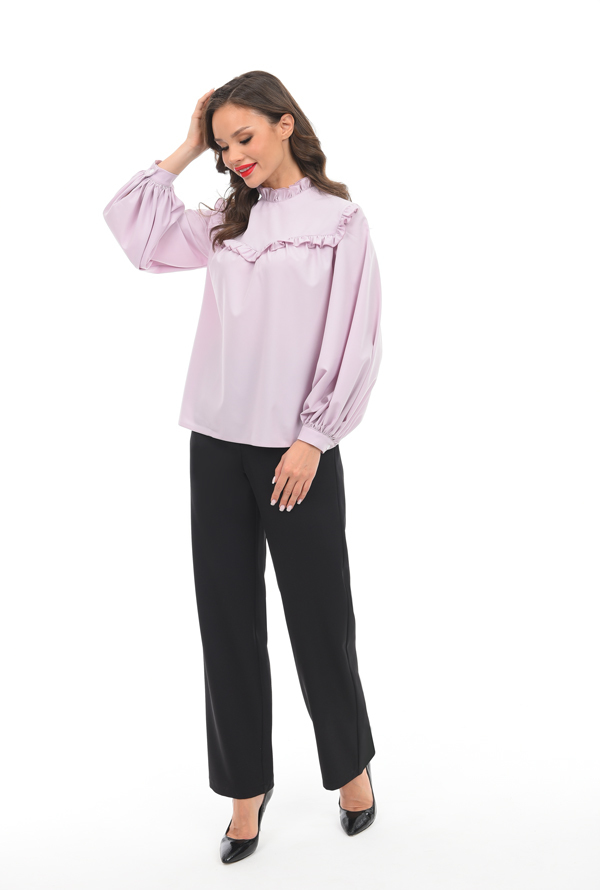 Блузка с рюшами – Тренд, который уже несколько сезонов не теряет свою популярность. Одежда, украшенная рюшами, выглядит нежно, женственно и стильно. Оригинальная вещь в женском гардеробе для любительн... Показать описаниеиц самовыражаться ! Модель с объемными рукавами. Отлично смотрится с многими вещами на каждый день. Артикул: Бл09107 Цвет: Светло-розовый Состав:Полиэстер 60%,Вискоза 35%, Эластан 5% Длина изделия: 62 см Рекомендуемый уход за изделием деликатная или ручная стирка на 30 градусах.Нельзя отбеливать, утюжить с изнанки. Цвет изделия на фотографии может отличаться от фактического из-за настройки монитора. Модель: Рост 174, Размер 44.