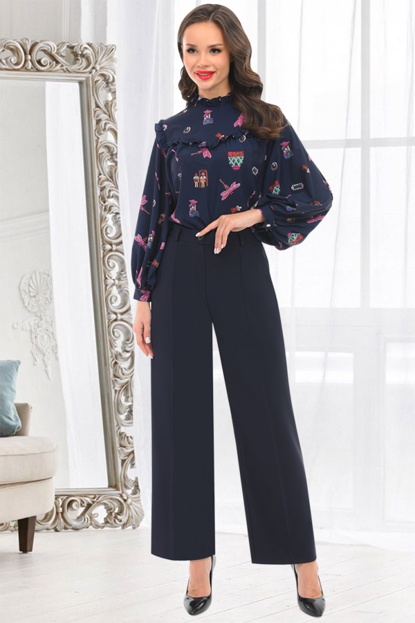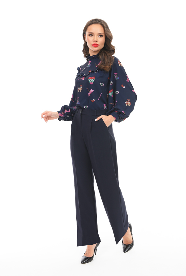 Брюки классического кроя с защипом по переду. Модель с высокой посадкой визуально вытягивает силуэт, делая ноги зрительно стройнее и длиннее, Брюки подойдут для повседневного стиля, классического, дел... Показать описаниеового и просто прогулочного.. Широкий пояс, который обеспечит прекрасную посадку на фигуру любого типа. Артикул: Бр22с014 Цвет:Темно-Синий Ткань: Костюмная Состав: Полиэстер 96%, Эластан 4% Длина изделия: 105см Рекомендуемый уход за изделием деликатная или ручная стирка на 30 градусах.