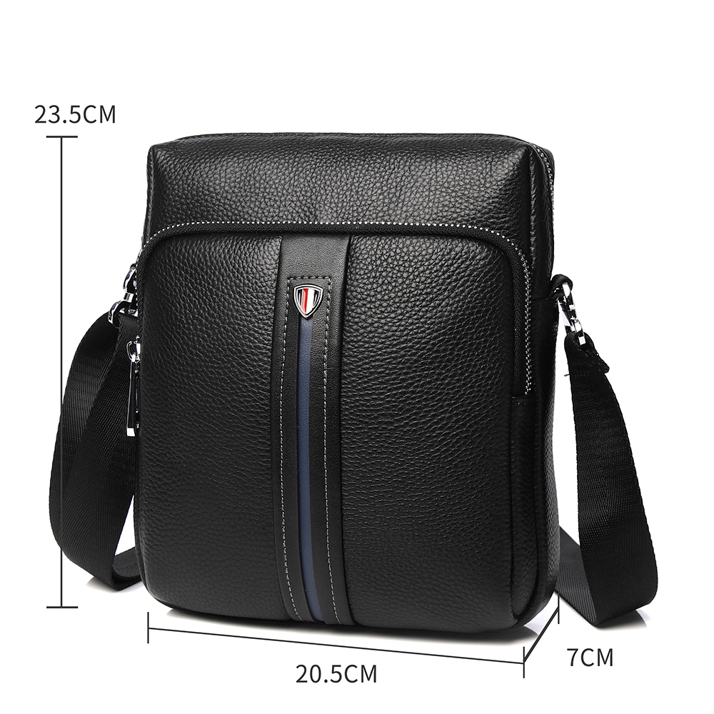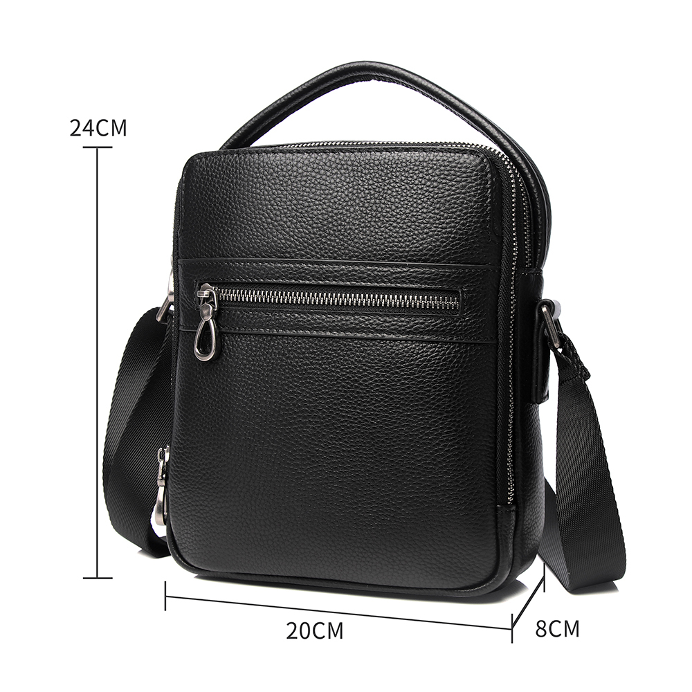 Классическая мужская сумка на плечо MIRONPAN выполнена из натуральной зернистой кожи в черном цвете. В модели два отделения закрывается на полукруглую молнию с кожаным поводком. Внутри 2 боковых карма... Показать описаниена для мелочей: открытый и на молнии. На лицевой стороне расположен вместительный карман на кнопке и на тыльной стороне также предусмотрен карман быстрого доступа на кнопке. Плечевой ремень регулируется по длине, ширина - 4 см. Цвет фурнитуры - темное серебро. Вес 650 Размер 20 х 23 х 6 (длина х высота х ширина)