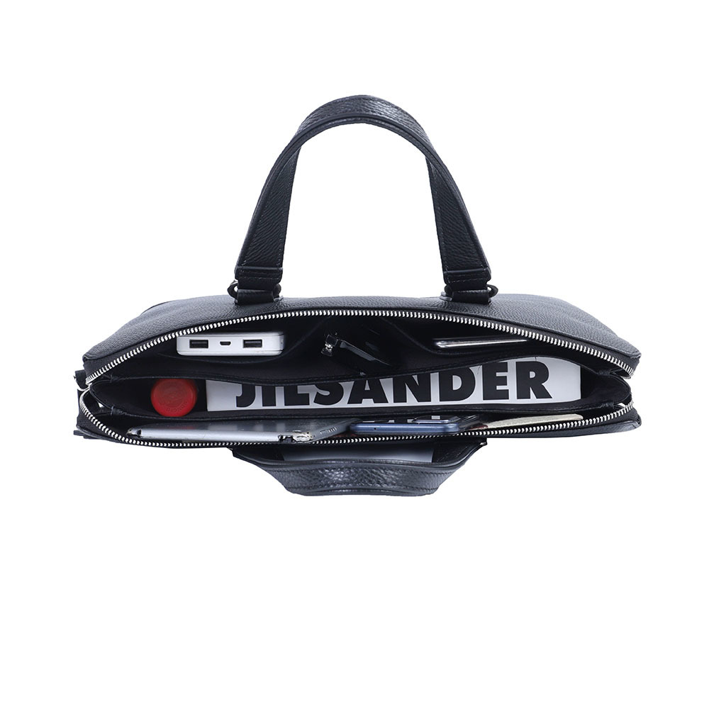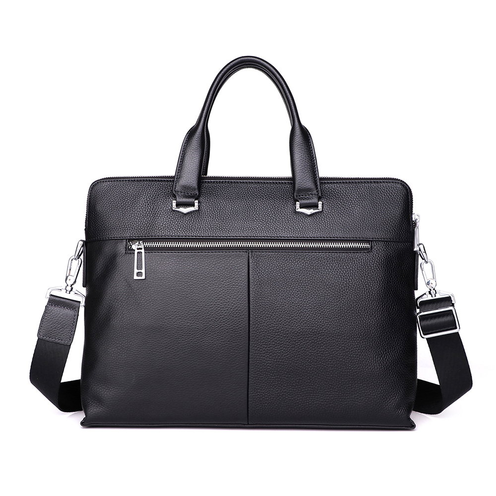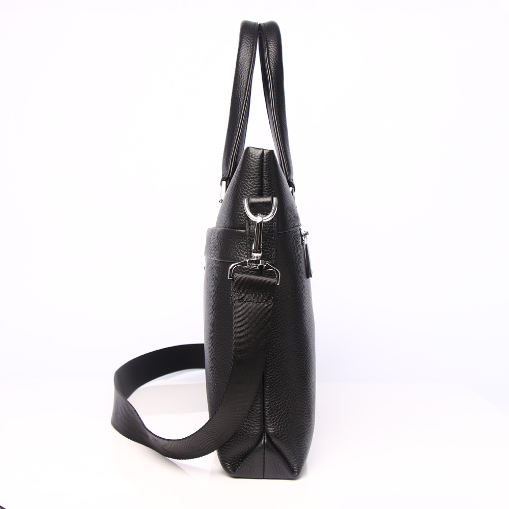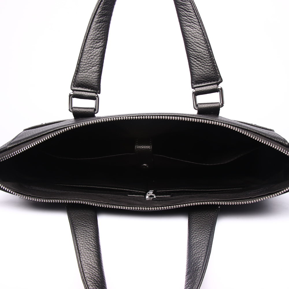 Стильная мужская сумка для документов MIRONPAN выполнена из натуральной зернистой кожи черного цвета. Модель имеет две ручки и съемный плечевой ремень, длина которого регулируется, ширина - 4 см. На т... Показать описаниеыльной стороне также предусмотрен карман быстрого доступа на молнии. Основное отделение закрывается на молнию с кожаным поводком. Внутри расположены органайзер для ручек, а также секция с мягкой стенкой для гаджетов. Сумка вмещает формат А4. Цвет фурнитуры - серебро. Вес 1110 Размер 38,5 х 27 х 6 (длина х высота х ширина)