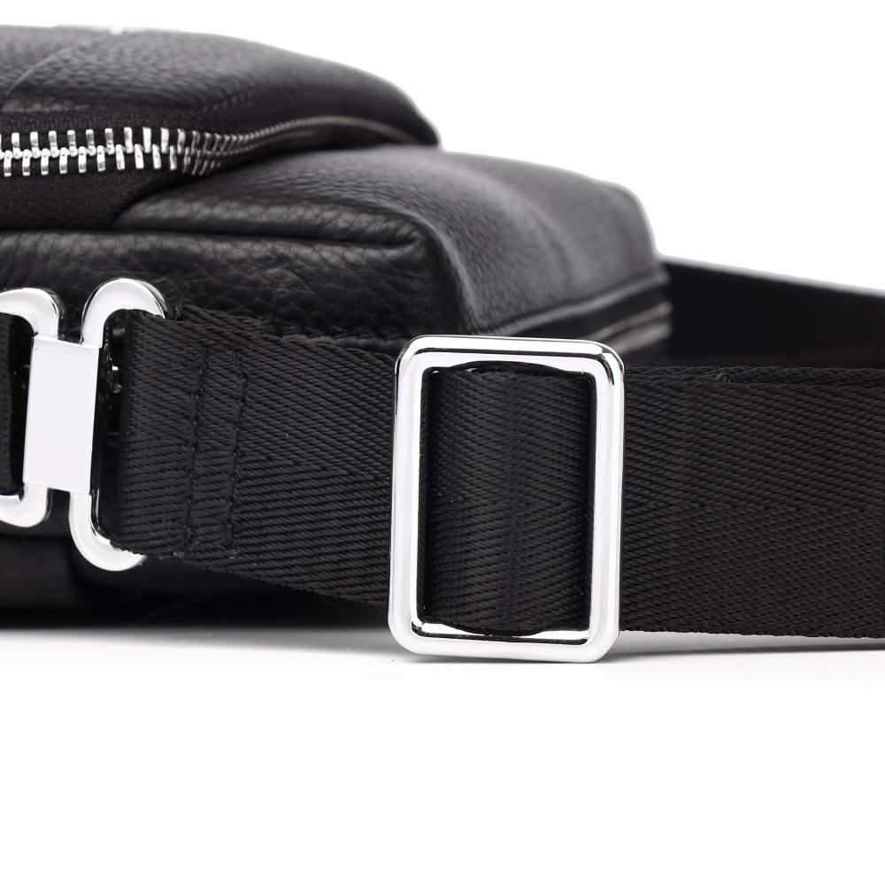 Классическая мужская сумка на плечо MIRONPAN выполнена из натуральной зернистой кожи в черном цвете. Основное отделение закрывается на полукруглую молнию с кожаным поводком. Внутри есть 2 боковых карм... Показать описаниеана для мелочей: открытый и на молнии. На лицевой стороне расположены 2 вместительных кармана на молнии и на магнитной кнопке, на тыльной стороне также предусмотрен карман быстрого доступа. Плечевой ремень регулируется по длине, ширина - 4 см. Цвет фурнитуры - серебро. Вес 450 Размер 17 х 20 х 7 (длина х высота х ширина)