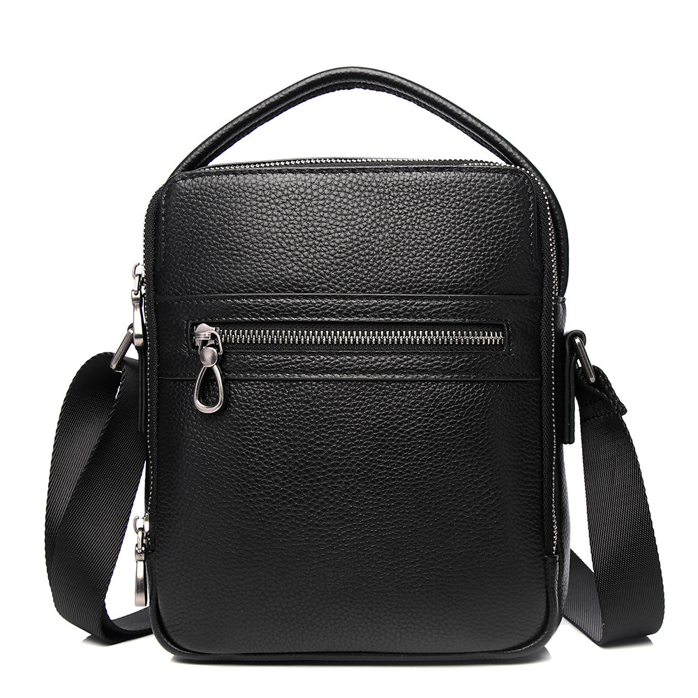 Классическая мужская сумка на плечо MIRONPAN выполнена из натуральной зернистой кожи в черном цвете. Основное отделение закрывается на полукруглую молнию с кожаным поводком. Внутри есть 2 боковых карм... Показать описаниеана для мелочей: открытый и на молнии. На лицевой стороне расположен вместительный карман на молнии, на тыльной стороне также предусмотрен карман быстрого доступа. Плечевой ремень регулируется по длине, ширина - 4 см. Цвет фурнитуры - серебро. Вес 500 Размер 19 х 21 х 4,5 (длина х высота х ширина)