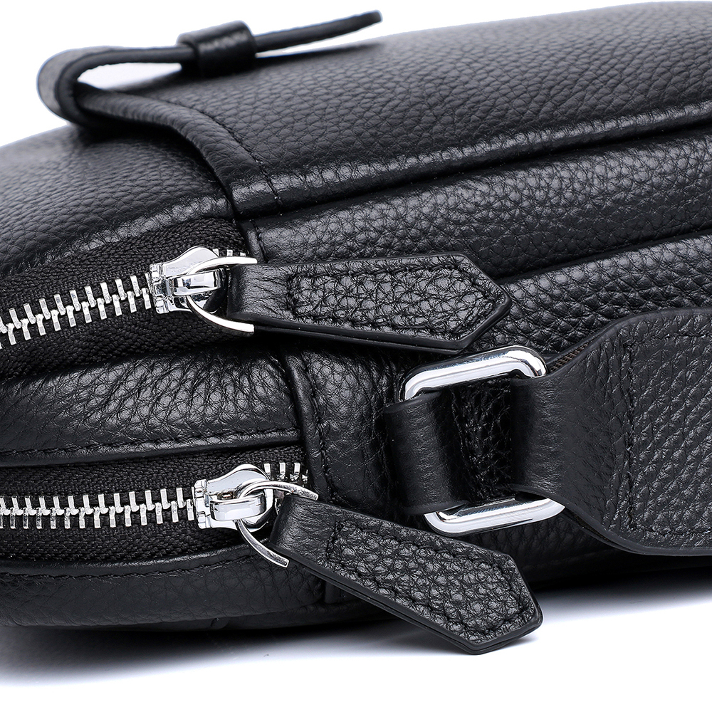 Вместительная мужская кросс-боди MIRONPAN выполнена из натуральной зернистой кожи в черном оттенке. В сумке 2 отделения, каждое из которых закрывается на полукруглую молнию. Внутри - 2 боковых кармана... Показать описание для мелочей: открытый и на молнии. На лицевой стороне находится вместительный карман на магнитной кнопке. На тыльной стороне - карман быстрого доступа на молнии. Плечевой ремень регулируется по длине, ширина - 3 см. Цвет фурнитуры - серебро. Вес 500 Размер 19 х 16 х 5 (длина х высота х ширина)