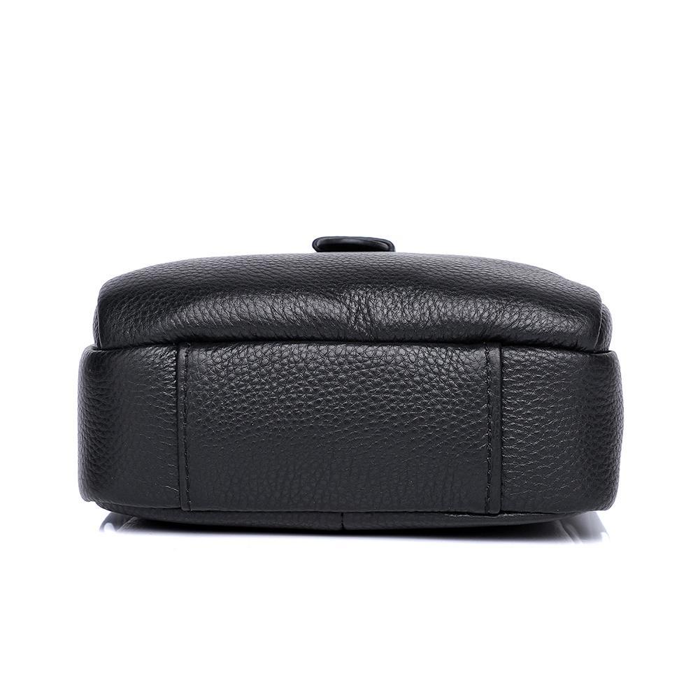 Стильная компактная сумка-слинг MIRONPAN выполнена из натуральной зернистой кожи в классическом черном цвете. Основное отделение закрывается на полукруглую молнию с кожаным поводком. Внутри карм... Показать описаниеан для мелочей на молнии. На лицевой стороне расположены 2 кармана разной вместимости. На тыльной стороне также предусмотрен небольшой карман быстрого доступа. Длина плечевого ремня регулируется, ширина - 3 см. Цвет фурнитуры - темное серебро. Вес 560 Размер 18 х 27 х 5,5 (длина х высота х ширина)