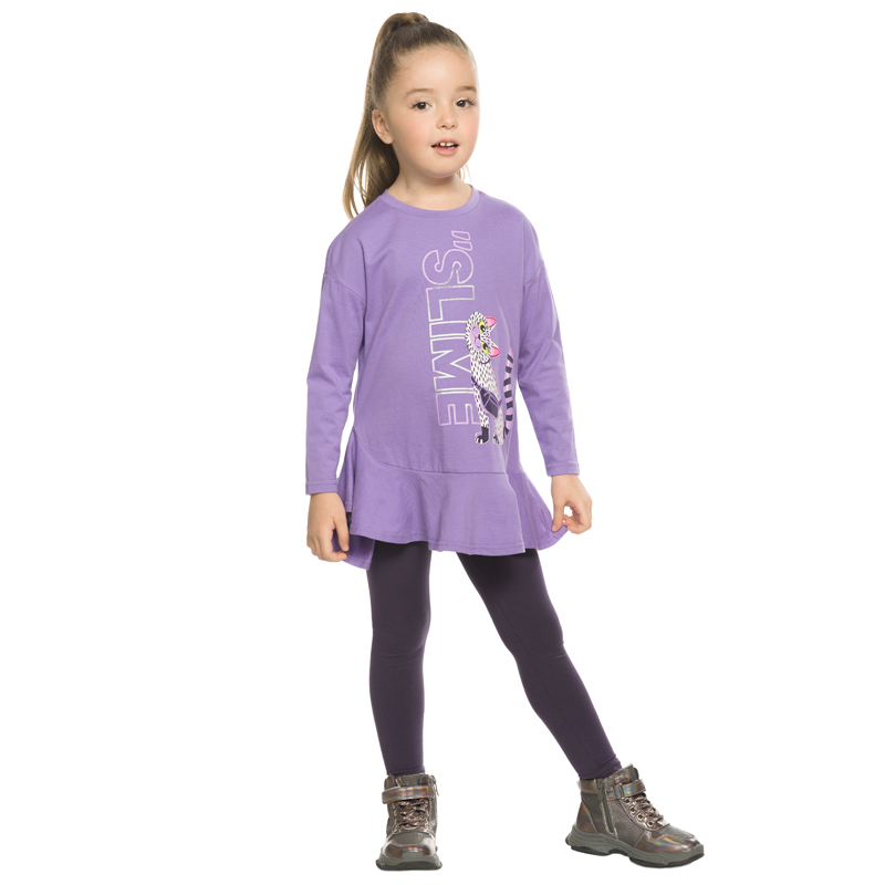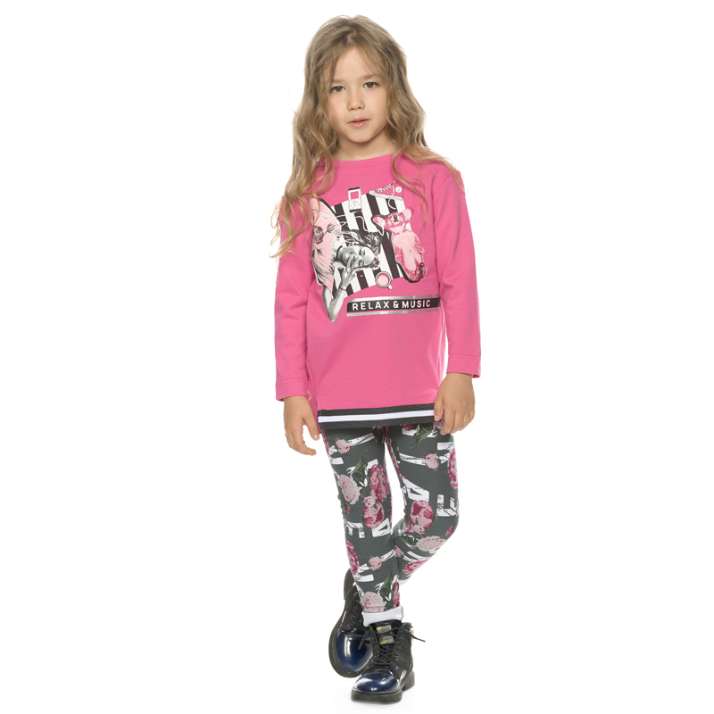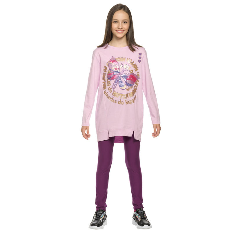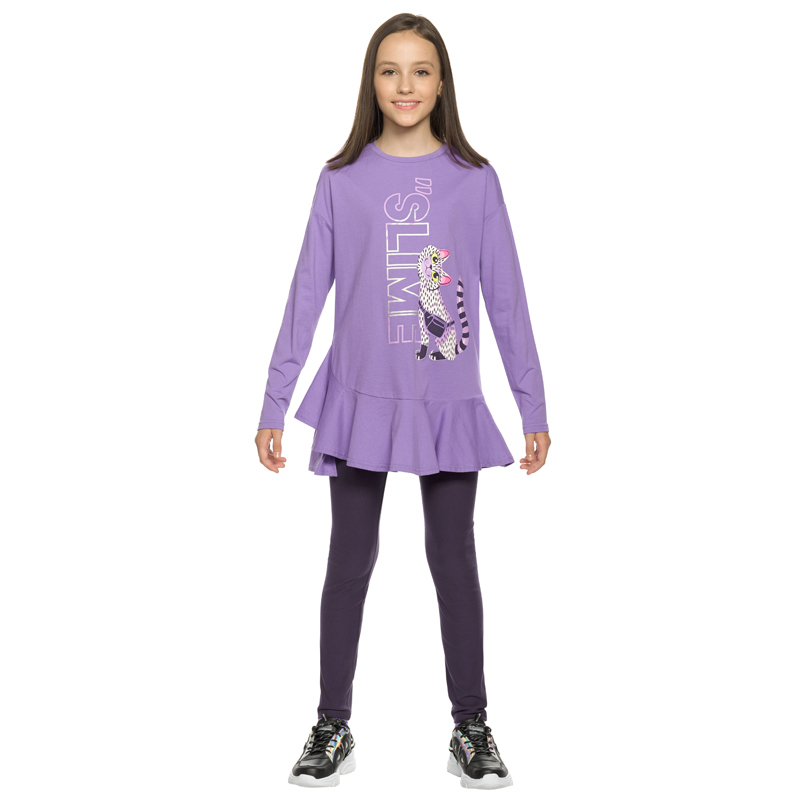 Состав: верх: 100%хлопок, низ: 95%хлопок 5%эластанОписание: Комплект для девочек: туника и лосины. Туника из футера умеренного объёма, рукав небольшого объема, слегка зауженный книзу, боковые швы пере... Показать описаниеведены на перед, внизу с разрезами, по низу переда настрочена трикотажная тесьма, перепад длины переда и спинки, перевод Расслабься и послушай музыку. Классические лосины из футера с начесом.