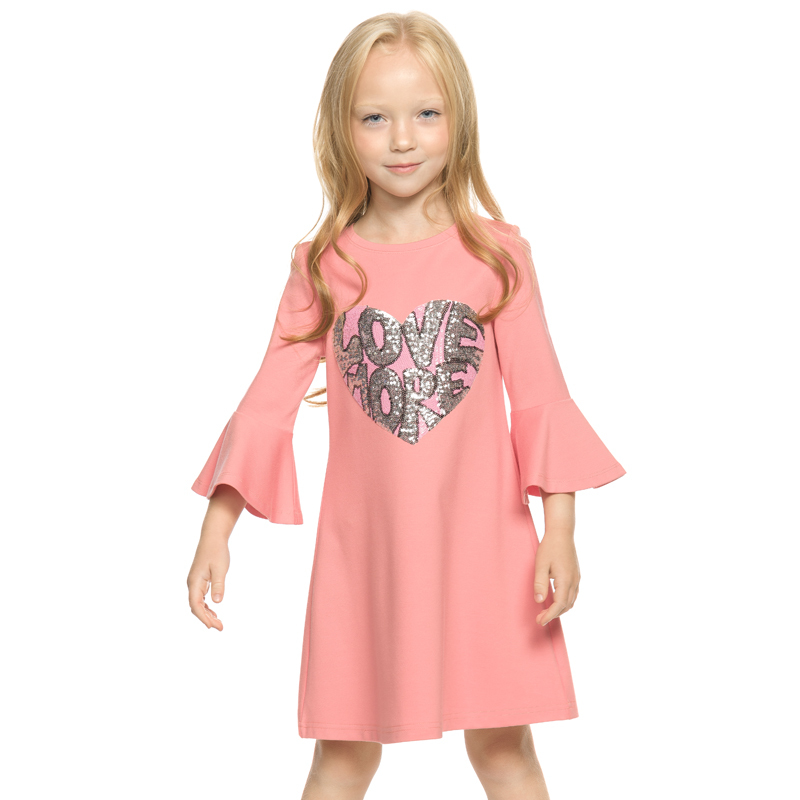 Состав: 60%вискоза 35%полиамид 5%эластанОписание: Нарядное платье пудрового цвета трапециевидного силуэта. Рукав втачной, длиной три четверти, небольшого объема с отрезным воланомконического разведени... Показать описаниея. Декор аппликацией в видесердца из пайеток розового и серебряного цветов. Новогоднее прямого кроя платье Pelican станет настоящим украшением вашей малышки на утреннике или любом другом празднике. Это нарядное платье, разработанное дизайнерами специально для девочек от 2 до 5 лет, идеально подойдет для детского сада и для праздничных мероприятий. Модель прямого покроя с длинными рукавами и миди длиной юбки сделана из мягкого и приятного к телу трикотажа, который не стесняет движений. Праздничный вид платью придают яркий принт в виде сердца с блестками и рукавами-клеш 3 четверти. Благодаря универсальному цвету, платье будет уместно как на каждый день, так и для особых случаев.