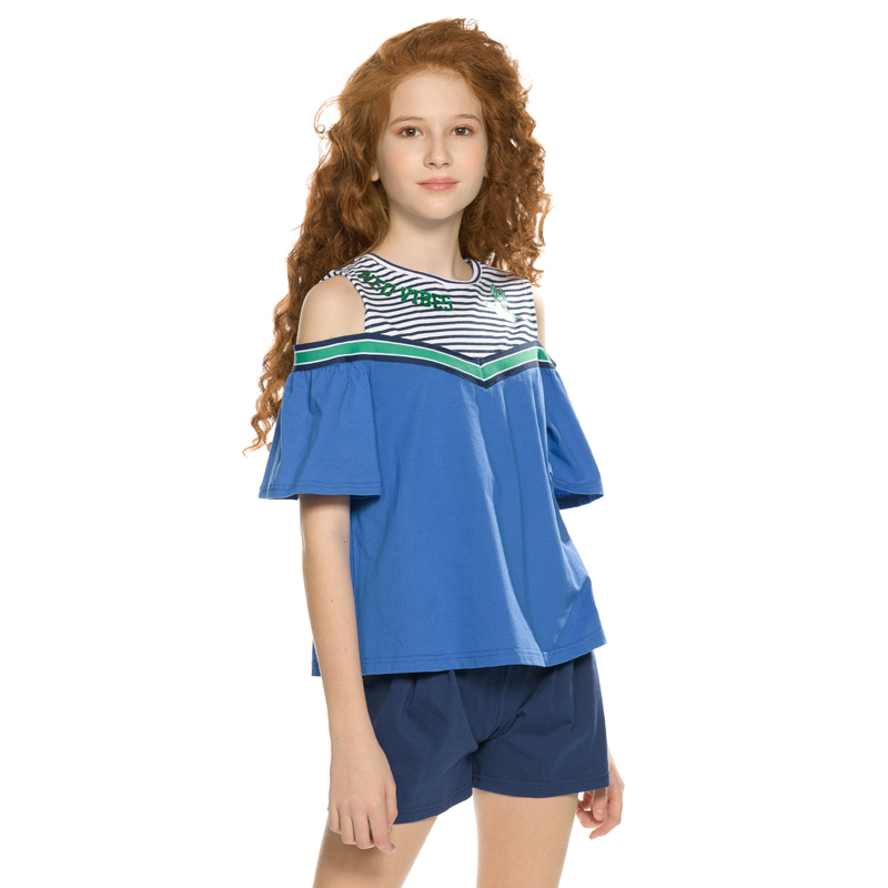 Состав: верх: 100%хлопок, низ: 60%хлопок 40%полиэстерОписание: Комплект для девочек футболка и шорты. Футболка свободного объема с открытыми плечами и рукавами воланами. По всей линии груди проходит д... Показать описаниеекоративная трикотажная лента, которая спереди формирует угол. Принт в виде птички колибри и надписи с разноцветным глиттером, перевод Новая атмосфера . Шорты свободного силуэта с защипами спереди и регулировкой объема шнуром.