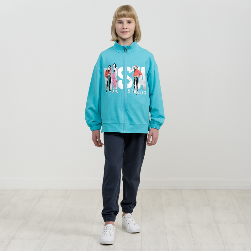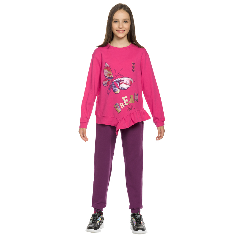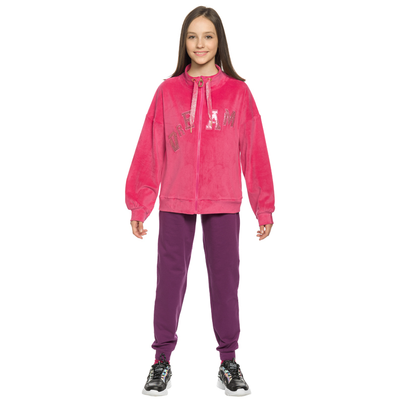 Состав: верх: 95%полиэстер 5%эластан, низ: 96%хлопок 4%эластанОписание: ИДЕТ В РАЗМЕР. Перед покупкой обязательно проверьте соответствие параметров ребенка с размерной сеткой в карточке товара! Спорти... Показать описаниевный костюм из футера для девочки Pelican. Толстовка оверсайз силуэта на молнии. По низу кофты есть манжета из основной ткани с разрезами по бокам. Низ объемных рукавов заканчивается манжетой с внутренним широким эластиком. Боковые швы слегка переведены на перед. Карманы в швах. Принт фэшн стилизация графика шрифты серебряным металликом. Штаны увеличенного объема по всей длине изделия, понизу собраны на внутреннюю эластичную резину. Внутренняя регулировка пояса шнуром. В составе ткани качественный 100% хлопок, поэтому изделие отлично пропускает воздух, легкое и мягкое, долго сохраняет форму даже после множества стирок, в мер уэластичное и износостойкое, практичное для регулярного применения. Материал приятный для соприкосновения с кожей. Благодаря широкой размерной сетке, костюм идеален для школы и сада. Универсальный тип ростовки для высоких, среднего роста и низких. Ветровка на молнии создает комфорт для ежедневного ношения. Подходит для кругологодичного ношения. Костюм практичный и удобный, идеален для занятий спортом, прогулок и путешествий, он не сковывает движения во время во время активных игр. Подойдет для подарка девочке на любой праздник.