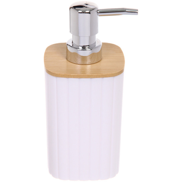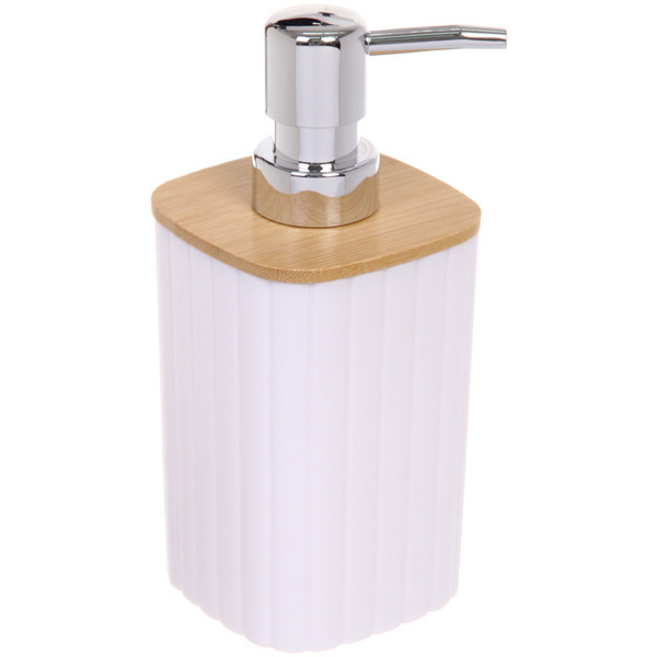 Дозатор для жидкого мыла объемом 350 мл незаменимый аксессуар для декора ванной комнаты и туалета, так же как стакан для зубных щеток, мыльница и ершик.Конструкция емкости надежная и экономичная, она ... Показать описаниеисключает подтекания и перерасход жидкого мыла. Деревянные вставки из натурального бамбука и пропитаны водоотталкивающим раствором. Хромированные элементы дают яркий блеск и устойчивы к истиранию. За одно нажатие, аксессуар выдает ровно 5 мл моющего средства.