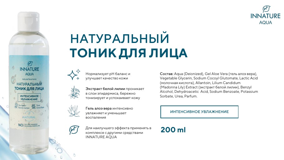 AQUA Натуральный тоник для лица интенсивное увлажнениеВопросы по товару