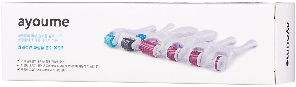 Ayoume Gold Roller 0,5 — это роллер для проведения мезотерапии в домашних условиях. Он оздоравливает кожу, уменьшает выраженность морщин, сужает поры, улучшает кровообращение, делает цвет лица более я... Показать описаниерким и насыщенным. Состав продукта Мезороллер изготовляется из высококачественного экологичного пластика, который является абсолютно гипоаллергенным. Микроскопические иглы сделаны из прочного титанового сплава с золотым напылением. Преимущества использования Обновление. Микроскопические иглы проникают в поверхностный слой дермы, нарушая структуру ткани и стимулируя микроциркуляцию. Благодаря этому создаётся новая ткань, более гладкая, эластичная и здоровая. Омоложение. Прибор улучшает рельеф кожи, подтягивает её, разглаживает морщины, снимает отёчность, устраняет двойной подбородок, уменьшает выраженность пигментаций, постакне и других несовершенств. Оздоровление. Устройство стимулирует кровообращение, активизирует обменные процессы, регулирует секрецию сальных желез, устраняет жирный блеск, стягивает поры, выр