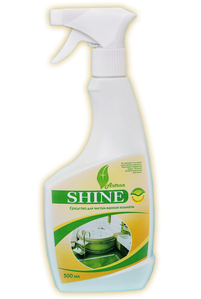 Shine - средство для чистки ванной комнаты. - Предназначено для чистки сантехники, ванн (в.т.ч. акриловых), раковин, смесителей, душевых леек, унитазов, кафеля; - Эффективные чистящие субстанции быстр... Показать описаниео проникают в слой грязи, удаляют ее, устраняют следы мыла, кальция, известковые отложения, растворяют водные камни и ржавчину; - Чистит и доводит до блеска без необходимости скрести щеткой. - Не содержит абразивных веществ, не царапает и не портит эмаль ванны и раковины; - Уничтожает неприятные запахи, обладает высоким антибактериальным действием, сохраняющимся в течение длительного времени; - Биоразлогаемо. Не наносит вреда окружающей среде. Способ применения : нанести на поверхность, обработать щеткой или губкой, смыть водой. Для сильно загрязненной поверхности оставить средство на 10мин., затем смыть водой. Готово к применению. Не разводить водой.
