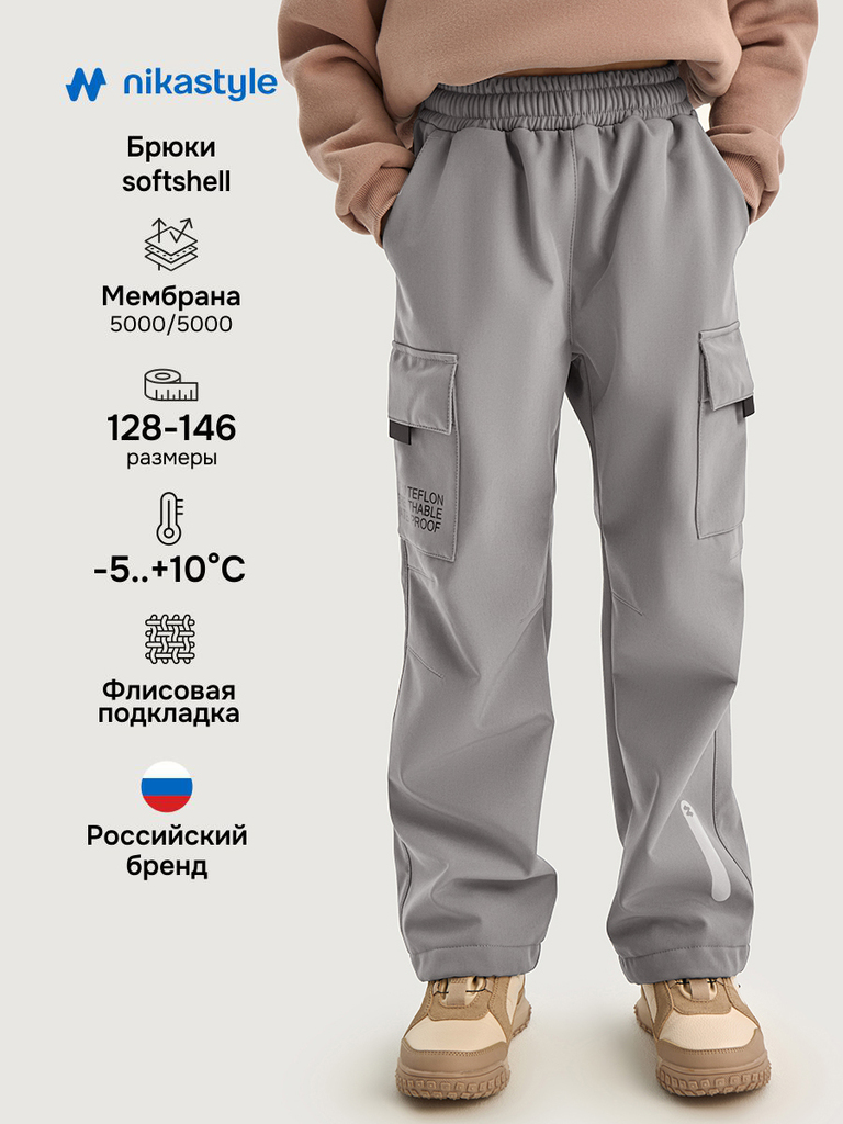 Брюки КАРГО из Softshell идеально подходят активным детям на прогулках, которые много двигаются и не сидят на месте. Softshell - это инновационный материал нового поколения, внешний слой которого защи... Показать описаниещает от влаги и ветра, внутренний слой из флиса сохраняет тепло и отводит лишнюю влагу, а промежуточный мембранный слой имеет хорошую паропроницаемость и позволяет коже дышать. Softshell приятный на ощупь, легкий и эластичный материал, не сковывающий движения ребенка. Функционал: - пояс и низ брюк на резинке, - боковые карманы, - накладные карманы с застежкой на магнитные кнопки, - эргономичный крой в области колен. Мы все продумали до мелочей, поэтому модель дополнительно оснащена светоотражающими элементами для безопасности ребенка в темное время суток. Когда носить? Весной и осенью с теплой поддевой, а также прохладным летом. Температурный режим от +5°С до +15°С. Уход за изделиями из Softshell аналогичен уходу за изделиями из мембранной ткани и достаточно прост — большинство загрязнений легко удаляются влажной салфеткой или щеткой с водой. Возможна машинная стирка при 30°С с использованием жидких средств для мембранной ткани. Отжим на минимальных оборотах, сушить на вешалке в расправленном виде.