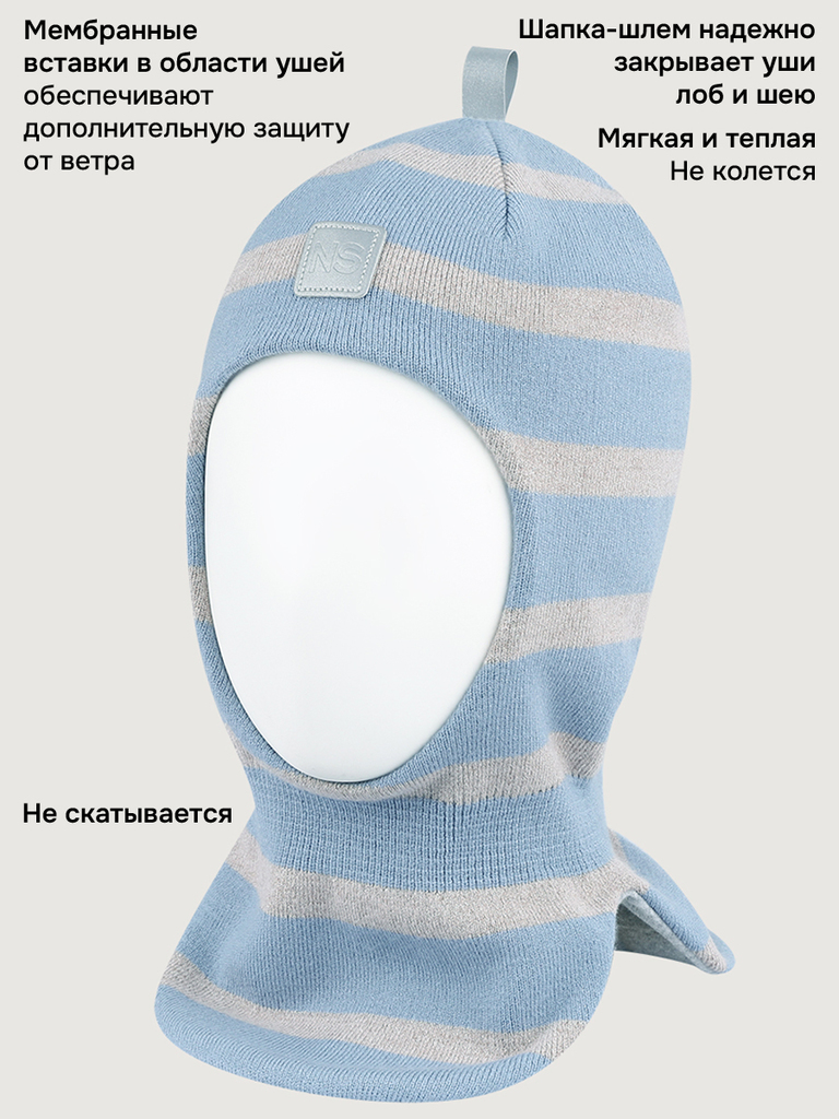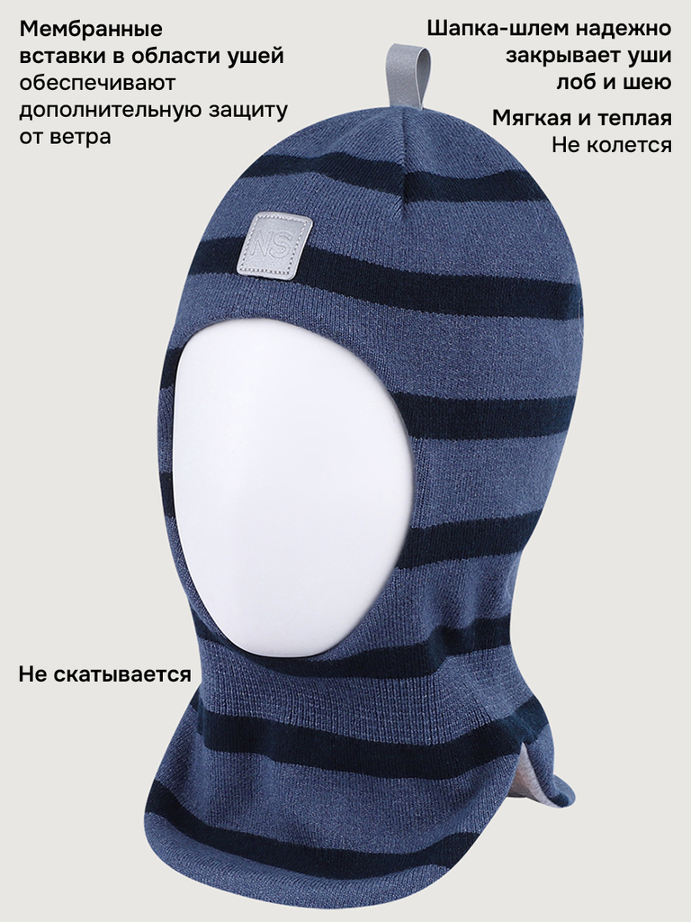 Балаклава ГОРИЗОНТ из вискозной пряжи на хлопковой подкладке. Балаклава максимально надежно закрывает голову и шею, заменяет шарф и манишку. Мембранные вставки в области ушей надежно защитят ребенка о... Показать описаниет проникновения холодного ветра. Отличный крой обеспечивает идеальную посадку с плотным прилеганием на ушах и без сползания на глаза. Легко надевается благодаря эластичной горловине. Наличие светоотражающих элементов для безопасности ребенка в темное время суток. Комфортная температура эксплуатации от -5°С до +10°С. Балаклавы отлично сочетаются с верхней одеждой NIKASTYLE.