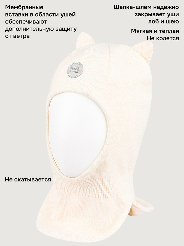Балаклава КИТТИ из вискозной пряжи на хлопковой подкладке. Балаклава максимально надежно закрывает голову и шею, заменяет шарф и манишку. Мембранные вставки в области ушей надежно защитят ребенка от п... Показать описаниероникновения холодного ветра. Отличный крой обеспечивает идеальную посадку с плотным прилеганием на ушах и без сползания на глаза. Легко надевается благодаря эластичной горловине. Наличие светоотражающих элементов для безопасности ребенка в темное время суток. Комфортная температура эксплуатации от -5°С до +10°С. Балаклавы отлично сочетаются с верхней одеждой NIKASTYLE.