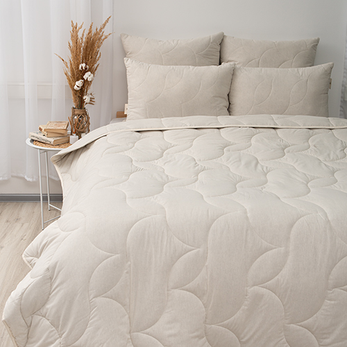 Ткань: поплин суровый Состав: Поплин Линейка: Чистый хлопок Наполнитель: 100% полиэстер Тематика: Однотонные Цветовая гама: Пастельные тона Плотность наполнителя: 0,9 кг Упаковка: Сумка-конверт из рог... Показать описаниеожки с печатью + транспортировочный пакет Страна: Россия Линейка подушек и одеял «Чистый хлопок» выполнена из 100% хлопковой ткани без использования отбеливателей, красителей и другой химии, которая обычно используется при производстве для придания ткани более гладкой и ровной структуры. Ткань имеет натуральный бежевый оттенок, фактура - матовая с небольшими растительными вкраплениями, мягкая и тактильно приятная. Стёжка выполнена на многоигольной машине в виде абстрактных листьев, что придаёт изделию оригинальный вид и надежно фиксирует наполнитель, благодаря фиксации наполнителя изделия допустимо стирать на деликатном режиме при 30 градусах. За счёт натуральных материалов подушки и одеяла не электризуются, пропускают воздух и не теряют форму, прочные и долговечные. Наполнитель с содержанием волокон натурального льна 70% + ПЭ 30% идеальное сочетание пользы натуральных материалов и практичности синтетических для комфортного сна. Лён обладает бактерицидными свойствами, способствует профилактике кожных заболеваний, успокаивает, снимает стресс и позволяет организму быстро восстановить силы. Такой наполнитель поддерживает оптимальный баланс - в жару приятно холодит, в холодное время согревает. Изделия завершены фирменной и практичной упаковкой из рогожки натурального оттенка с фотопечатью, для подушек - сумка-конверт на молнии, для одеял тубус с ручкой на молнии.