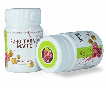 Высокая концентрация витаминов (Е, А, B1, B2, B3, В6, B9, В12, С), макро- и микроэлементов (калий, натрий, кальций, железо и др.), полиненасыщенных жирных кислот, флавоноидов, фитостеролов, дубильных ... Показать описаниевеществ, фитонцидов, хлорофилла, энзимов. Масло богато полиненасыщенной линолевой кислотой Омега-6 (до 70%), в комплексе с мононенасыщенной олеиновой кислотой Омега-9 (ее в виноградном масле до 25%). Также в виноградном масле в незначительном количестве присутствуют пальмитиновая, стеариновая, пальмитолеиновая, арахиновая и линоленовая Омега-3 кислоты. Высокая антиоксидантная активность масла виноградных косточек в значительной мере определяется входящими в его состав витаминами Е, А и С, флавоноидамирезвератролом и проантоцианидином. Благодаря наличию в составе вышеназванных биохимических компонентов виноградное масло в 20 раз эффективнее, чем витамин С в борьбе с опасными для организма человека свободными радикалами (особыми молекулами кислорода, повреждающими клеточную структуру, являющимися причиной преждевременного старения, онкологических и воспалительных заболеваний). Свойства: • Проявляет сильное регенерирующее и противовоспалительное действие, что делает его незаменимым при уходе за проблемной кожей. Оно способствует омоложению, устранению морщин и значительному повышению упругости кожи. • Способствует снижению холестерина и препятствует развитию атеросклероза. • Противовоспалительные и бактерицидные свойства используются при лечении травм, ожогов, обморожений, угревой сыпи. • Наличие мощных антиоксидантов тормозят разрушение клеток и наступления старения. • Борется с целлюлитом, различными уплотнениями на коже. • Благотворное действие на сердце и кровеносные сосуды, находит применение в профилактике и комплексном лечении атеросклероза, гипертонии, тромбозов, ишемической болезни сердца, сердечной недостаточности, инфарктов, инсультов, а также весьма эффективно при таких сосудистых заболеваниях, как варикозное расширение вен, купероз, диабетическая ретинопатия, дистрофия желтого пятна сетчатки, геморрой. • Виноградное масло весьма полезно для профилактики и в составе комплексной терапии заболеваний, связанных с эррозивно-язвенным повреждением слизистых оболочек желудочно-кишечного тракта (эзофагит, гастрит, язва желудка и двенадцатиперстной кишки, гастродуоденит, колит, энтероколит и др.). • Оказывающее гепатопротекторное действие, виноградное масло достаточно часто находит применение в составе комплексной протиоопухолевой химиотерапии, а также используется для профилактики и комплексного лечения желчекаменной болезни, холецистита, гепатита, алкогольных поражений печени. Противопоказания: индивидуальная непереносимость. Дозировка: 3-4 капсулы 3 раза в день после еды.
