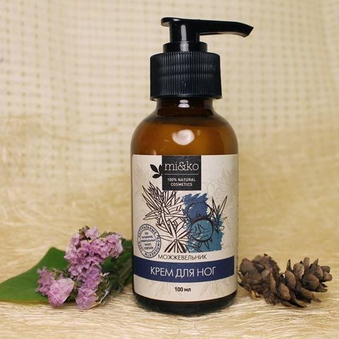 Неудобная обувь, упорные тренировки, стоячая работа, многочасовые прогулки с малышом… В любой из этих ситуаций крем «Можжевельник» позаботится о комфорте ваших усталых, измученных ног. Он быстро избав... Показать описаниеит от боли и подарит долгожданное ощущение свежести — как если бы вы прошлись босиком по росистой траве. Пока вы отдыхаете, наслаждаясь расслабляющим ароматом крема, целебные растения в его составе работают над здоровьем ваших сосудов, стимулируют кровоток, снимают отеки, обеззараживают кожу и заживляют мелкие трещинки. И хотя невесомый крем полностью впитывается за считанные секунды, дополнительное увлажнение и защита останутся с вами еще надолго! Главные действующие вещества Эфирное масло можжевельника, добытое из душистых ягод и древесины этого хвойного кустарника, славится чудесной способностью снимать усталость. Это действенный природный антисептик с ярким противоревматическим эффектом. Способно расщеплять избыток мочевой кислоты в мышцах, подходит для профилактики и лечения артрита и ревматизма. Уменьшает боль и отеки, укрепляет стенки сосудов. Ментол дарит утомленным ногам долгожданный оазис прохлады. Быстро уменьшает боль и напряжение, разгоняет застоявшуюся кровь и лимфу. Освежает и дезодорирует. Первый шаг к восстановлению усталых ног — снятие боли и воспаления. Помимо ментола и эфирного масла можжевельника, такой эффект дает масло андиробы. Лечит различные мышечные воспаления, обезвреживает вредные микроорганизмы. Эфирные масла эвкалипта и майорана, расслабляющий экстракт шалфея также снижают боли в мышцах, заживляют микротравмы кожи, обеззараживают и улучшают кровообращение. Экстракт маклейи преумножает противовоспалительный эффект средства. Важный аспект здоровья ног — прочные, эластичные сосуды. В составе крема за их укрепление отвечают экстракт готу колы, экстракт гинкго билоба, а также экстракт жимолости, богатый витамином С и биофлавоноидами, полезными для сосудов. Обеззараживают кожу, снимают стресс. Эфирное масло бергамота, экстракты хмеля и плюща ценят за антисептические и противогрибковые свойства. Заживляют микротрещины и ранки, снимают раздражение, борются с кожными паразитами и грибками. Восстанавливающим эффектом обладают и другие компоненты крема. Масло таману и эфирное масло кипариса стимулируют циркуляцию крови, питают кожу и заживляют мелкие трещинки. Молочная кислота — средство для деликатного отшелушивания кожи. Усиливает обновление тканей, разглаживает микрорельеф, очищает поверхность от ороговевших клеток. Способствует более глубокому проникновению других компонентов средства. Масло сладкого миндаля — легкое питательное масло, изобилующее витаминами (Е, А, F, группы B). Смягчает, снимает раздражения, замедляет процессы старения. Пшеничный протеин имеет уникальный аминокислотный состав, подобный естественному увлажняющему фактору кожи. Оказывает эффект длительного увлажнения, смягчает и разглаживает. Эфирное масло лаванды — одно из «королевских» ароматерапевтических масел с восхитительным успокаивающим, освежающим эффектом. Сильный природный антисептик, заживляет воспаления. Прекрасно смягчает огрубевшую кожу, а экстракты хвоща и конского каштана укрепляют и тонизируют ее. Воск нима содержит глицериды ценных жирных кислот, которые пи