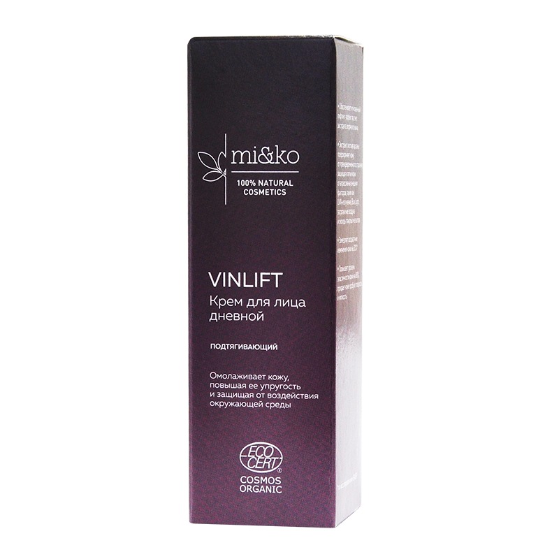 Обогащенный уникальным органическим комплексом, состоящим из экстракта ледяного вина и муциновой кислоты, бархатистый крем для лица VINLIFT предотвращает первые признаки старения. Эффективный микс рас... Показать описаниетительных компонентов замедляет возрастные изменение на 31%. Богатый антиоксидантами экстракт ледяного вина обеспечивает мгновенный лифтинг-эффект, а экстракт листьев аргании защищает от UVA-излучения, Blue Light, оксидов тяжёлых металлов. Через 28 дней применения эластичность кожи повышается на 88%, она становится заметно более подтянутой и напитанной.