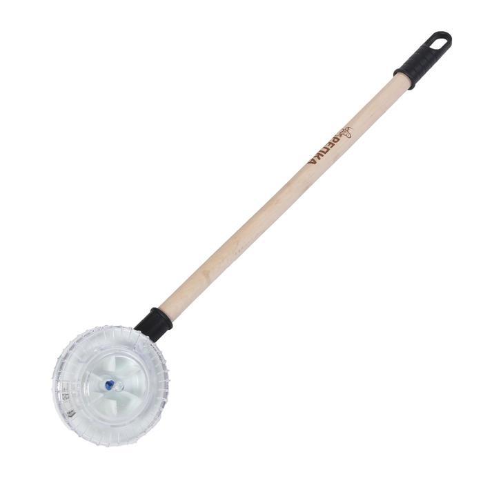 Ручная сеялка с деревянным черенком — это простой инструмент для точного высева семян на грядках и клумбах. Он сокращает время посевных работ и помогает экономно расходовать семенной материал. * Удобн... Показать описаниеый деревянный черенок: Рукоятка из дерева длиной 61 см дает возможность работать без наклона, сохраняя спину. Инструмент подходит для высоких и низких грядок, его вес не утомляет при длительном использовании. * Пластиковый рабочий механизм: Диск диаметром 12 см с отверстиями распределяет семена равномерно, контролируя глубину и плотность посева. Это снижает необходимость последующего прореживания всходов. * Простота в использовании: Сеялка не требует специальных навыков — достаточно установить нужное отверстие, засыпать семена и прокатить по подготовленной почве. Инструмент подходит для посева многих культур. * Надёжность конструкции: Пластиковый корпус устойчив к влаге и почвенным удобрениям, не ржавеет и легко очищается после работы. Эффективность и экономия: Инструмент помогает избежать скученности всходов и сокращает расход семян до 30%. Ровные ряды упрощают дальнейший уход — прополку и окучивание. Сеялка становится полезным помощником для огородников, ценящих аккуратность и порядок на грядках. С ней посев превращается из рутинной работы в точный и быстрый процесс.