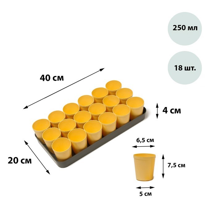 Набор для рассады: стаканы по 250 мл (18 шт.), поддон 40 х 20 см, цвет МИКС, GreengoВопросы по товару
