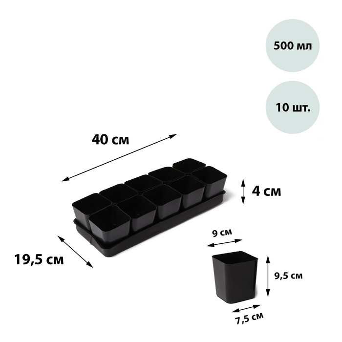 Набор для рассады: стаканы по 500 мл (10 шт.), поддон 40 х 19,5 см, МИКС, GreengoВопросы по товару
