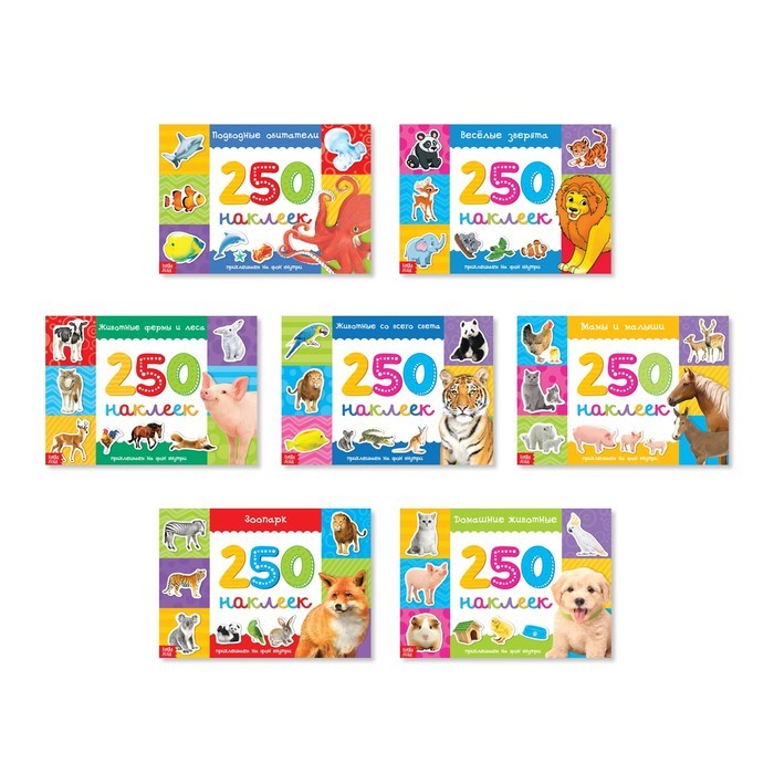 250 наклеек набор «Животные», 7 шт. по 8 стр.