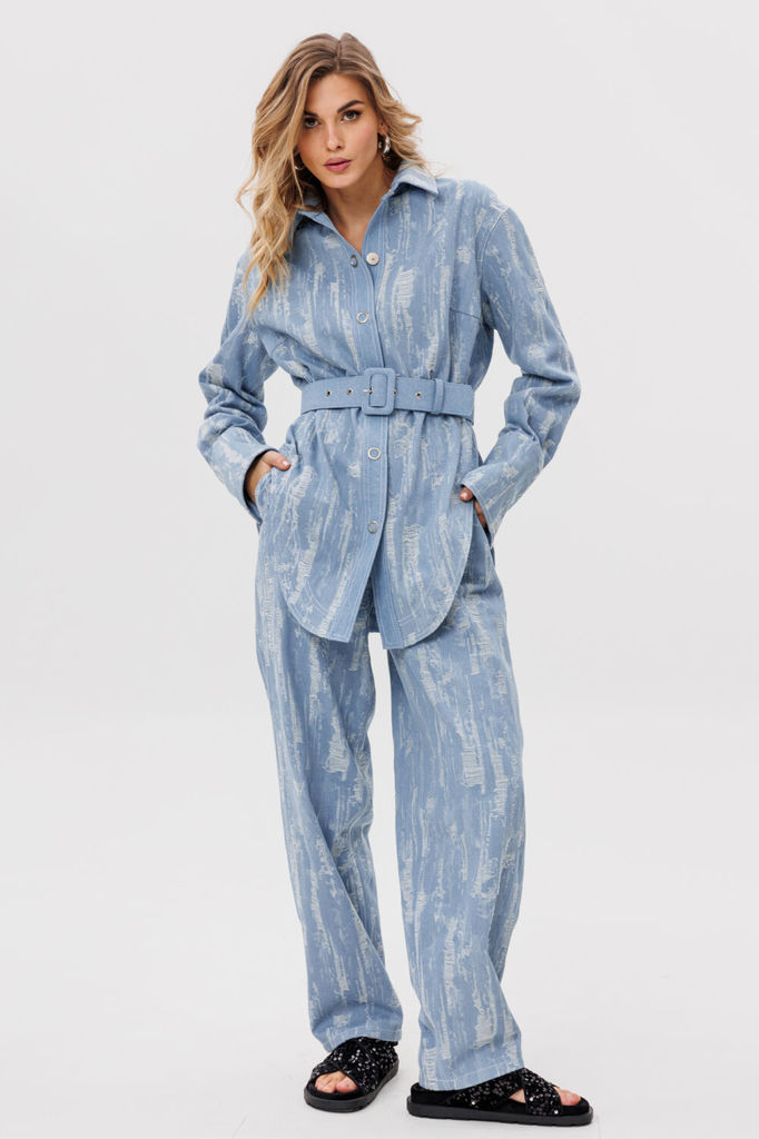 Состав: Хлопок-98%; ПУ-2%; Брюки выполнены из джинса с отделкой из гипюра. Брюки прямого покроя, длиной в пол, на притачном поясе. Верхняя часть брюк выполнена из джинса, нижняя часть из гипюра. Спере... Показать описаниеди боковые карманы с фигурным входом и застежка на молнию. На задних частях кокетки и накладные карманы. Пояс застегивается на пробивную пуговицу. Длина брюк: 110 см. Гарантийный срок не установлен ГОСТ 25294 - 2003