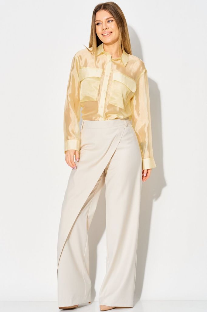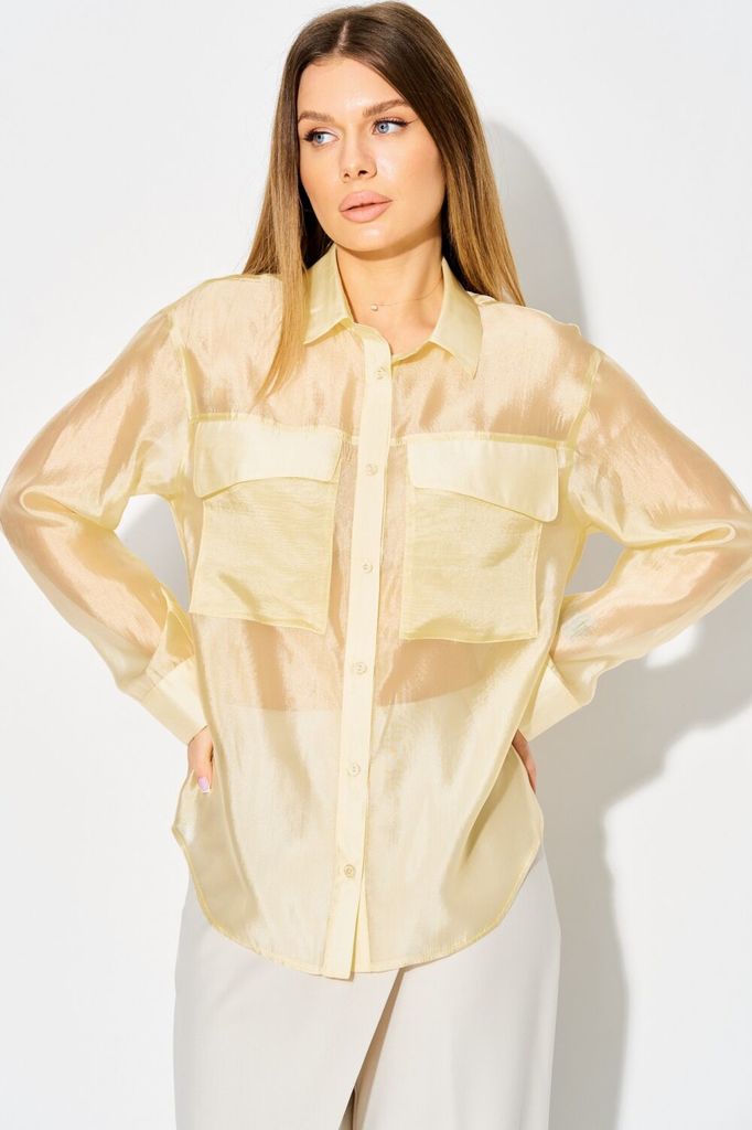 Состав: Вискоза-23%; ПЭ-77%; Стильная блузка от LAIKONY из полупрозрачной струящейся органцы. Модель полуприлегающего силуэта длиной ниже линии бедер. Блузка выполнена с изысканным спущенным плечом, ч... Показать описанието придает ей особую легкость и романтичность. Воротник рубашечного типа, центральная застежка на шесть пуговиц добавляет нотку классики. Детали переда украшены кокетками, а накладные карманы придают блузке современный вид. Спинка с кокеткой и аккуратной складкой по центру, рукава втачные одношовные с манжетами и застежками на пуговицы. Блузка выполнена из магкой вискозной органзы, не тянется. Длина изделия по спинке 69-72 см, длина рукава 55,2-55,8 см в зависимости от размера. Эта блузка — идеальный выбор для любого случая: будь то деловая встреча или вечерняя прогулка. Создайте свой уникальный образ с нашей блузкой и будьте в центре внимания! На фото с нашими брюками L-024. Также будет прекрасно смотреться с брюками L-942-2 и L-914 нашей весенней коллекции.