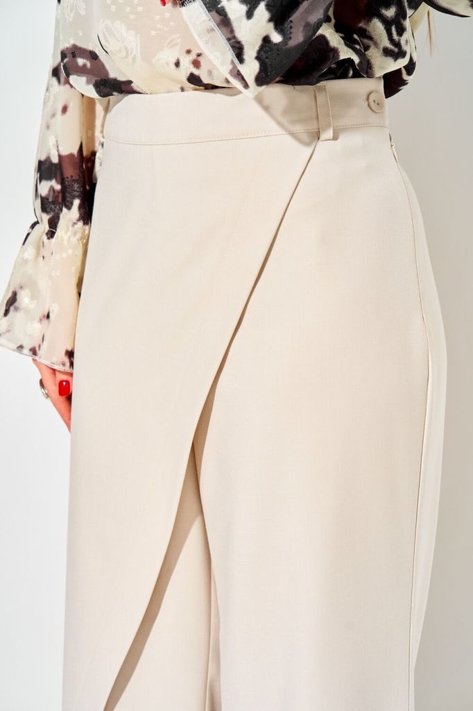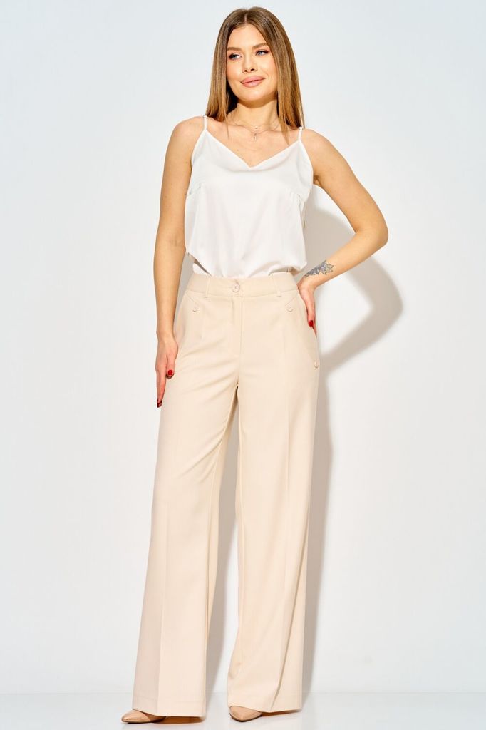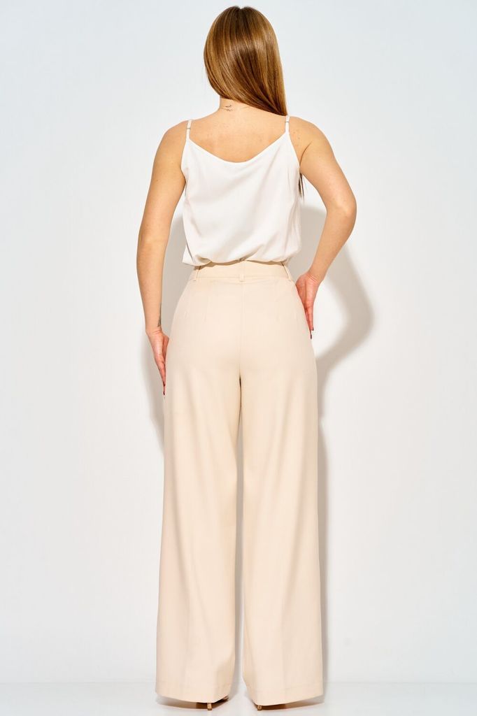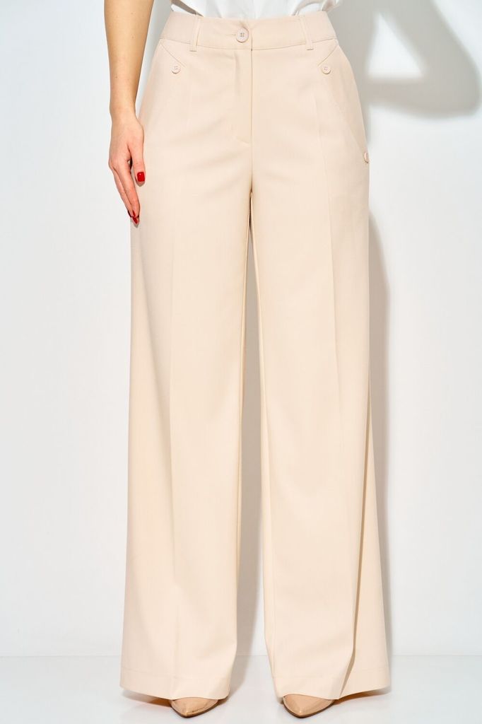Состав: Вискоза-32%; ПЭ-65%; Спандекс-3%; Стильные широкие брюки от LAIKONY . Брюки плотно облегают вверху и расширенные к низу, с притачным поясом-кокеткой со шлевками. Застежка на тесьму-молнию и 1 ... Показать описаниепетлю и пуговицу. На передних частях брюк в боковых швах обработаны наклонные карманы с широкими листочками с втачными концами, на которых декоративно прикреплены по 2 пуговицы. На задних частях брюк обработаны вытачки. На передних половинках брюк заутюжены канты. Длина брюк по боковму шву с поясом 111 см. Наши модные брюки составят незаменимую часть вашего базового гардероба. На фото с нашим топом L-037-3.