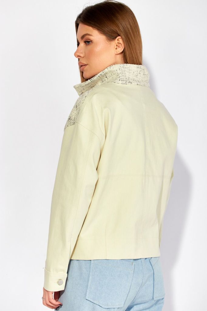 Состав: Хлопок-100%; Оригинальный женский жакет от LAIKONY из джинса и торикотажа! Жакет свободного силуэта длиной до линии бедер идеально сочетает в себе стиль и комфорт. Вырез горловины «под горло» ... Показать описаниес втачной стойкой. Спущенная линия плеча придает ему расслабленный вид. Центральная застежка на 7 пуговиц, удобные наклонные прорезные карманы с листочками придают жакету практичность и стильный штрих. Детали спинки с горизонтальным подрезом и вытачками внизу обеспечивают идеальную посадку и подчеркивают вашу фигуру. Рукава втачные с притачными манжетами и разрезами в локтевом шве создают дополнительный комфорт и свободу движений. Полочка жакета выполнена из трикотажа, рукава и спинка из джинса, жакет без подкладки. Декор может отличаться от представленного на фотографии. Длина изделия по спинке 55,5-57,5 см в зависимости от размера, длина рукава 54 см. Этот жакет станет вашим верным спутником на вечерней прогулке с друзьями. На фото с нашими джинсами L-144.