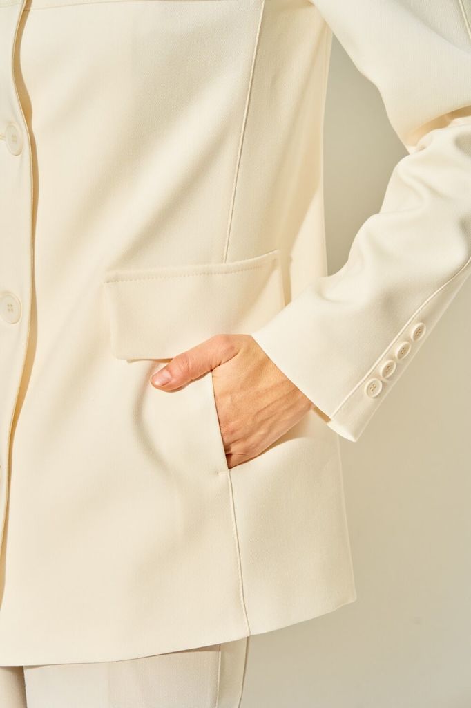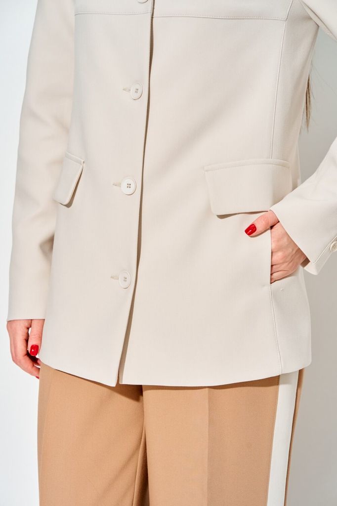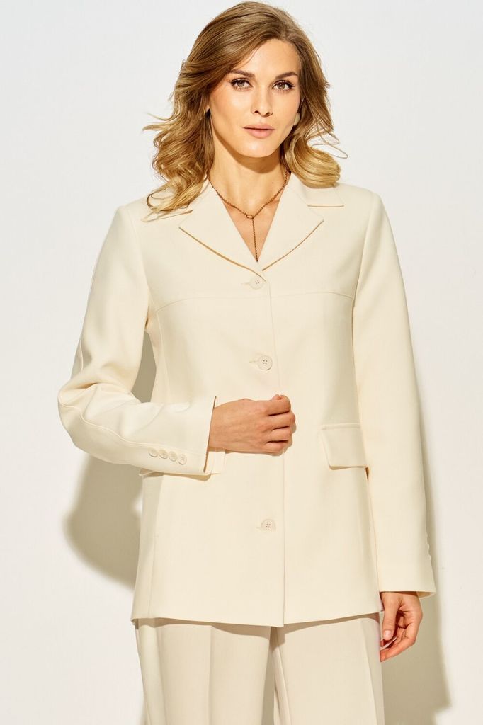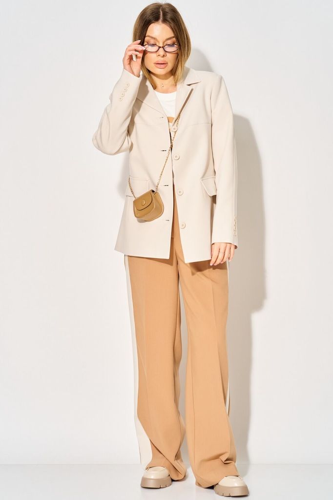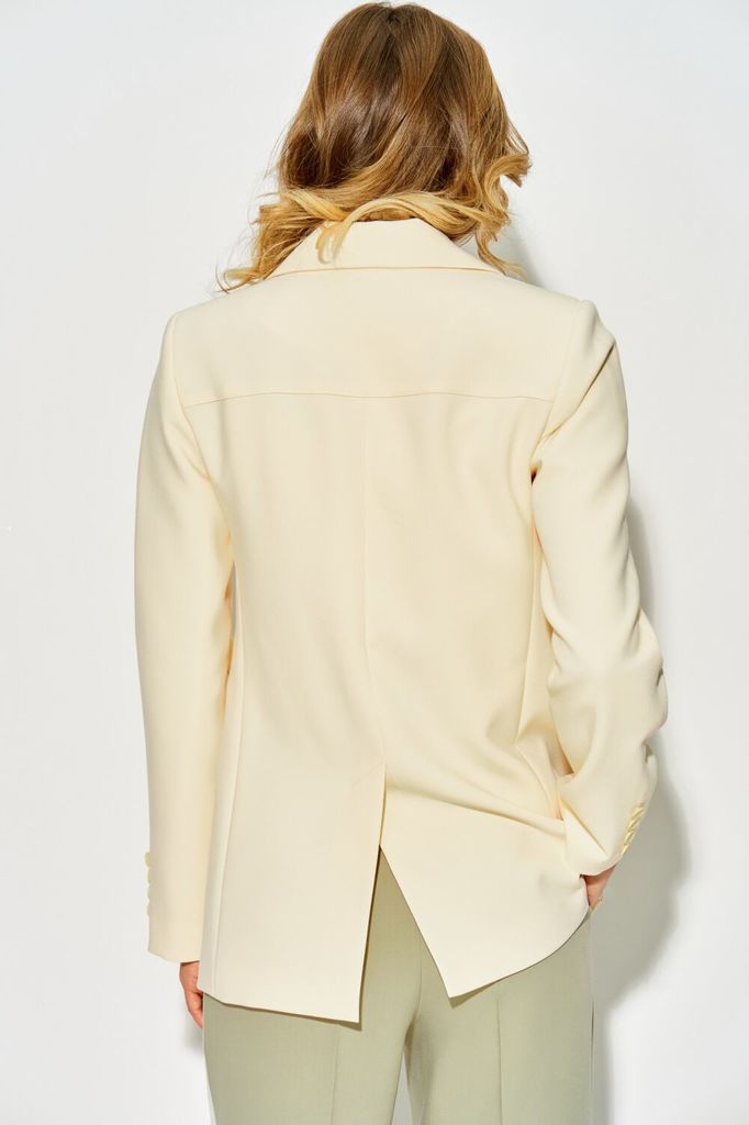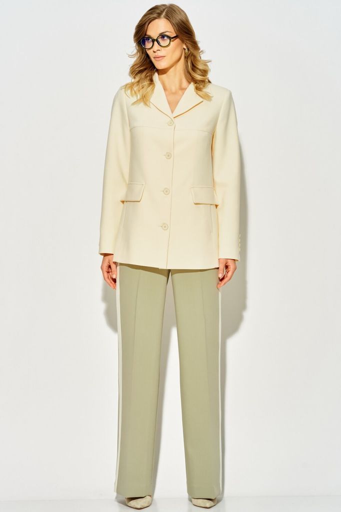 Состав: Вискоза-20%; ПЭ-76%; Спандекс-4%; Однобортный жакет LAIKONY свободного силуэта длиной ниже линии бедер. Застежка центральная на петли и пуговицы, воротник отложной пиджачного типа. Детали пере... Показать описаниеда с кокетками и отрезными бочками, в которых обработаны карманы, на уровне линии талии расположены декоративные клапаны. Спинка жакета с кокеткой, нижняя часть с рельефными швами и средним швом, который заканчивается шлицей. Рукава втачные одношовные, по центру вертикальный подрез, внизу шва декоративно прикреплены по 4 пуговицы. Жакет выполнен из костюмной ткани, на подкладке. Ткань не тянется. Декор может отличаться от представленного на фотографии. Длина изделия по спинке 70,5-72,5 см в зависимости от размера, длина рукава 62 см. Шикарный жакет для офиса и деловых встреч. Вместе с нашими брюками L-914 (на фото) или L-942-2 составит стильный запоминающийся образ.
