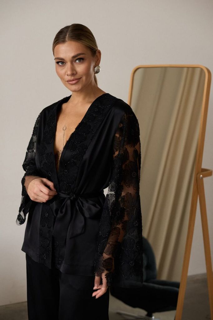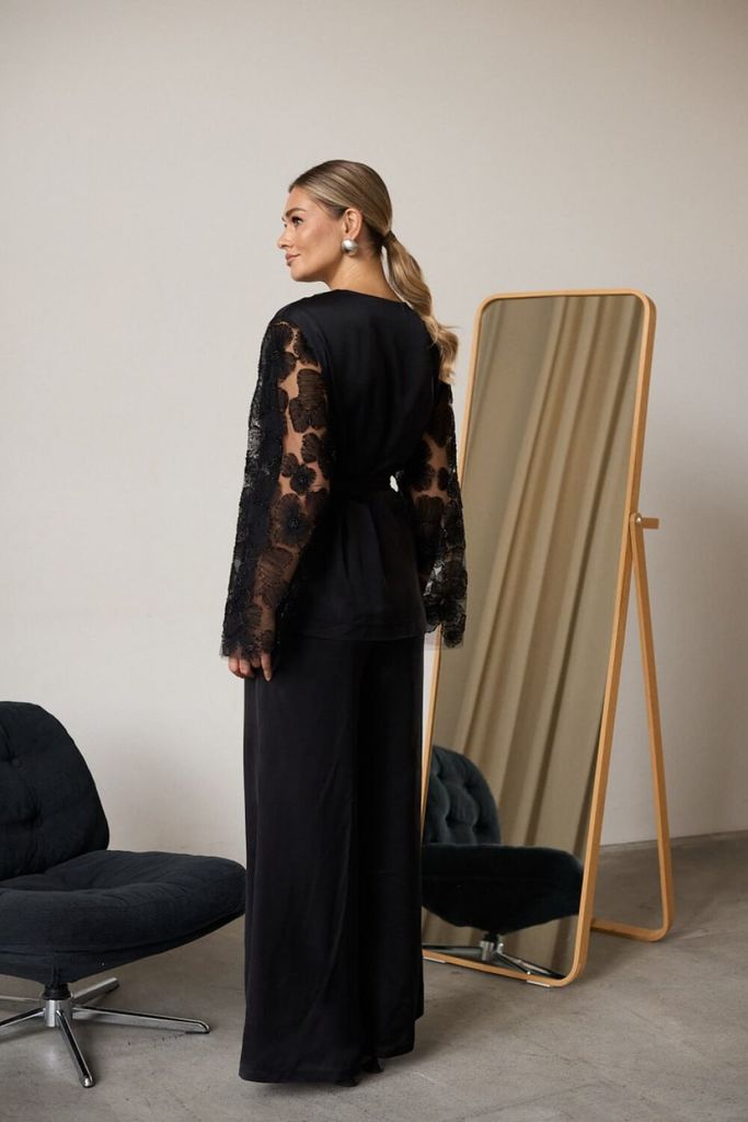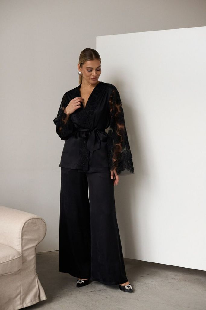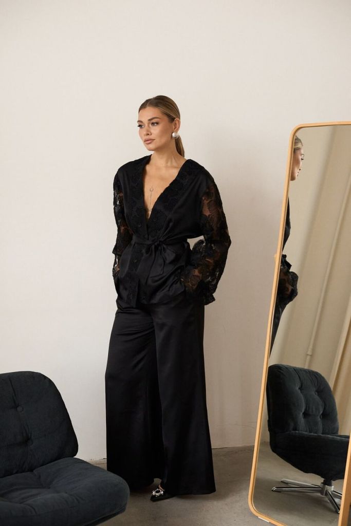 Состав: Вискоза-62%; ПЭ-32%; Спандекс-6%; Костюм женский полуприлегающего силуэта из атласа и отделкой из кружевной ткани. Жакет полуприлегающего силуэта, застежка центральная обработана широкой прито... Показать описание чной планкой из отделочной ткани. Рукав втачной, немного расклешённый к низу из отделочной кружевной ткани. Брюки прямого силуэта, слегка расклешённые к низу. В боковых швах обработан карман с отрезным бочком, верхний срез обработан притачным поясом с эластичной тесьмой что обеспечит идеальную посадку по фигуре. Костюм дополнен съёмным поясом из основной ткани Наименование измерений Размеры (см) Допустимые(см) отклонения +/- 46 48 50 52 54 56 Обхват груди 92 96 100 104 108 112 Обхват бедер 100 104 108 112 116 120 Обхват талии 74 76 82 86 90 94 Рост 170 170 170 170 170 170 Длина спинки 69 69 69 69 69 69 +/- 1см. Ширина спинки 41 41 41 44 44 44 +/- 1см. Ширина изделия на уровне глубины проймы 108 112 116 120 124 128 +/- 1см. Ширина изделия на уровне линии талии 106 110 114 118 122 126 +/- 1см. Ширина изделия на уровне линии бёдер 108 112 116 120 124 128 +/- 1см. Ширина изделия в низу 109 113 117 119 123 127 +/- 1см Длина рукава 62 62 62 62 62 62 +/- 1см Ширина рукава в низу 48 48 48 51 51 51 +/- 1см Ширина рукава в верху 22 24 26 28 30 32 +/- 1см Ширина плеча 14 14 14 14 14 14 +/- 1см Брюки Наименование измерений Размеры (см) Допустимые(см) отклонения +/- 46 48 50 52 54 56 Обхват груди 92 96 100 104 108 112 Обхват талии 74 76 82 86 90 94 Обхват бедер 100 104 108 112 116 120 Рост 170 170 170 170 170 170 +/- 1см. Длина брюк по боковому шву 109 109 109 109 109 109 +/- 1см. Ширина брюк по линии бедер 106 110 114 118 122 126 +/- 1см. Ширина брюк по линии талии без учета резинки 92 96 100 104 108 112 +/- 1см. Ширина брюк по линии талии с учетом резинки 66 70 74 78 82 86 +/- 1см. Ширина брюк внизу изделия 74 76 78 80 82 84 +/- 1см. Ширина пояса 4 4 4 4 4 4 +/- 1см Ширина брюк на уровне колена 68 70 72 74 76 78 +/- 1см. Длина брюк по шаговому шву 80 80 80 80 80 80 +/- 1см.