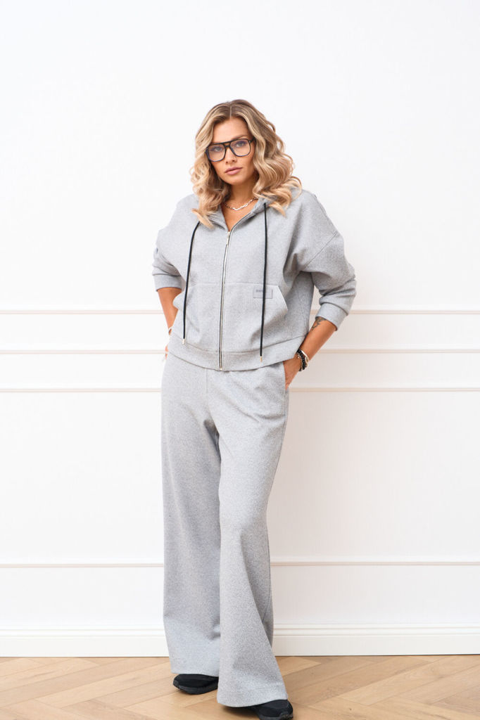 Состав: Вискоза-66%; Спандекс-4%; Нейлон-30%; Костюм женский из нежнейшего мягкого трикотажного полотна. Толстовка прямого силуэта с центральной застёжкой на тесьму молнию по горловине мягкий капюшон ... Показать описание с кулисой и шнуром обеспечивает дополнительный комфорт и защиту от ветра. Практичный карман-кенгуру обработан на передних половинках задекорирован стильной нашивкой. По низу изделия для лучшей посадки притачной пояс. Линия плеча спущена, рукав втачной по низу притачная манжета. Брюки прямого силуэта в боковых швах обработан карман. Верхний срез на притачном поясе на эластичной тесьме и шнуром что позволяет легко регулировать посадку. На задних половинках настрочен накладной карман. Наименование измерений Размеры (см) Допустимые(см) отклонения +/- 48 50 52 54 56 Обхват груди 96 100 104 108 112 Обхват бедер 104 108 112 116 120 Рост 170 170 170 170 170 +/- 1см. Длина спинки 55 55 55 55 55 +/- 1см. Ширина спинки 62 62 66 66 66 +/- 1см. Ширина изделия на уровне глубины проймы 126 130 134 138 142 +/- 1см. Ширина изделия на уровне линии талии 120 124 128 132 136 +/- 1см. Ширина изделия в низу 118 122 126 130 134 +/- 1см Длина рукава 50 50 50 50 50 +/- 1см Ширина рукава в низу 25 25 28 28 28 +/- 1см Ширина рукава в верху 42 44 46 48 50 +/- 1см Ширина плеча 26 26 26 26 26 +/- 1см Брюки Наименование измерений Размеры (см) Допустимые(см) отклонения +/- 48 50 52 54 56 Обхват груди 96 100 104 108 112 Обхват талии 76 82 86 90 94 Обхват бедер 104 108 112 116 120 Рост 170 170 170 170 170 +/- 1см. Длина брюк по боковому шву 113 113 113 113 113 +/- 1см. Ширина брюк по линии бедер 112 116 120 124 128 +/- 1см. Ширина брюк по линии талии без учета резинки 90 94 98 102 106 +/- 1см. Ширина брюк по линии талии с учетом резинки 78 82 86 90 94 +/- 1см. Ширина брюк внизу изделия 64 66 68 70 72 +/- 1см. Ширина пояса 4,5 4,5 4,5 4,5 4,5 +/- 1см Ширина брюк на уровне колена 62 66 70 74 78 +/- 1см. Длина брюк по шаговому шву 80 80 80 80 80 +/- 1см.