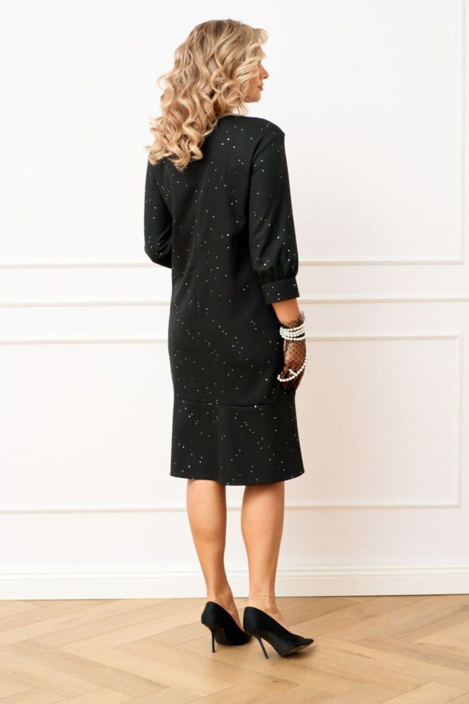 Состав: ПЭ-100%; Платье полуприлегающего силуэта, слегка расширенное к низу из шифоновой ткани на подкладке длинной ниже колена будет незаменимо в теплые осенние дни. Горловина обработана рубашечным в... Показать описание оротником, застежка центральная на притачных планках застегивающаяся на петли и пуговицы. Рукав втачной длинно 7/8 по низу притачная манжета. Платье отрезное по линии талии, для лучшего прилегания юбка платья присборена, по полочке кокетка в шов притачивания которой вставлен клапан. Платье дополнено съемным ремешком. Наименование измерений Размеры (см) Допустимые(см) отклонения +/- 48 50 52 54 Обхват груди 96 100 104 108 Обхват бедер 104 108 112 116 Рост 170 170 170 170 +/- 1см. Длина спинки 106 106 106 106 +/- 1см. Ширина спинки 38 42 42 42 +/- 1см. Ширина изделия на уровне глубины проймы 100 106 110 114 +/- 1см. Ширина изделия на уровне линии бедра 120 128 132 136 +/- 1см. Ширина изделия по линии талии 80 84 88 92 +/- 1см. Длина рукава 47 47 47 47 +/- 1см. Ширина рукава в веху 36 38 40 42 +/- 1см. Ширина рукава в низу 24 28 28 28 +/- 1см. Ширина плеча 13 13 13 13 +/-1см.