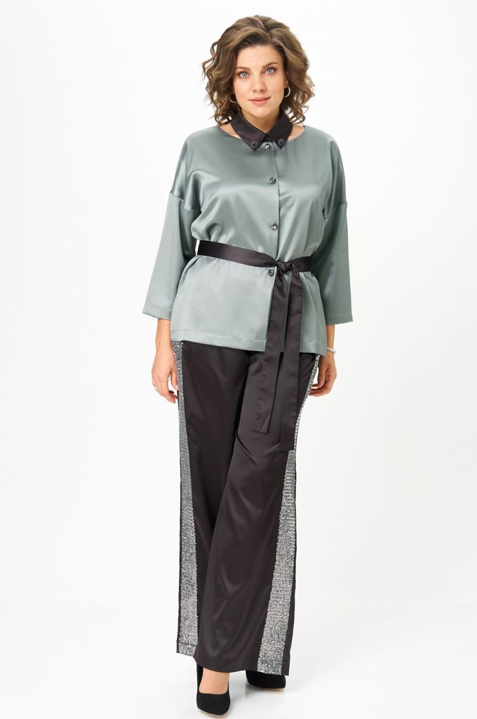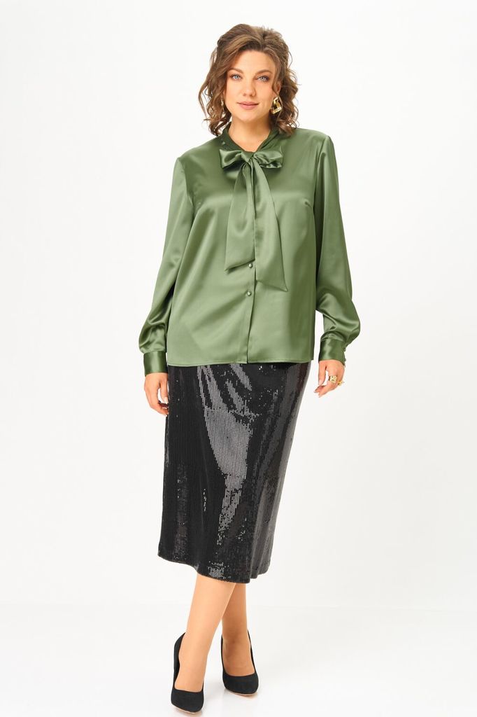 Состав: ПЭ-100%; Оливковая женская блузка-рубашка из лёгкой атласной ткани с изысканным бантом над вырезом представляет собой гармоничное сочетание деловой элегантности и романтичного шарма. Прямой св... Показать описаниеободный силуэт обеспечивает комфорт в течение всего дня, сохраняя при этом аккуратный и утончённый вид. Треугольный вырез с изящными завязками, превращающимися в модный бант на груди, добавляет образу ноту женственности, делая его одновременно строгим и нежным. Длинный рукав с элегантной манжетой на пуговице позволяет регулировать посадку. Лёгкий тонкий атлас добавляет луку воздушности, сохраняя при этом необходимую для офиса сдержанность. Особенностью этой модели является её универсальность - представленная в больших размерах, она подчёркивает достоинства фигуры разного типа. Блузка-рубашка одинаково хорошо смотрится как в строгом деловом ансамбле, так и в более романтичных повседневных, праздничных и стильных образах. Таблица измерений изделия в готовом виде М 5042 Наименование измерений/размер 50 52 54 56 58 60 Ширина по линии груди 56 58 60 62 64 66 Ширина по линии бёдер 57 59 61 63 65 67 Длина изделия по спинке 65 65 65 65 65 65 Длина рукава 63 63 63 63 63 63 Допустимые отклонения +-1-1,5 см
