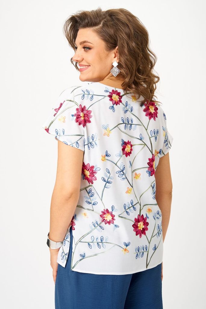 Состав: Вискоза-100%; Модная женская блузка с вышитым цветочным принтом и коротким рукавом— находка для тех, кто ценит удобство и элегантность. Лёгкая, свободная модель c V –образным вырезом горловины... Показать описание, рукавом на спущенной линии проймы, выполнена из приятной к телу вискозы, идеальна для лета и весны. Благодаря классической посадке и удлинённой спинке, она скрывает нюансы фигуры, а декоративный элемент по линии горловины украшает силуэт, создавая женственный акцент. Таблица измерений изделия в готовом виде М 5036 Наименование измерений/размер 52 54 56 58 60 62 Ширина по линии груди 63 65 67 69 71 73 Ширина по линии бёдер 63 65 67 69 71 73 Длина изделия по спинке 66 66 66 68 68 68 Длина рукава от горловины 46 46 46 46 46 46 Допустимые отклонения +-1-1,5 см