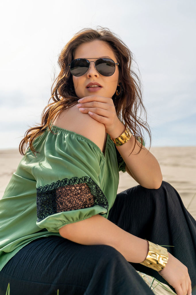 Состав: Вискоза-100%; Блузка с рукавами покроя "реглан", горловина блузка с эластичной резинкой, что позволяет носить блузку на плечах и с открытыми плечами. Рукава реглан, свободные 3/4, по низу с эл... Показать описаниеастичной резинкой.блузка со съёмным поясом.