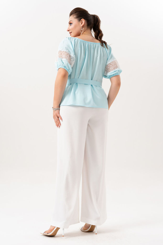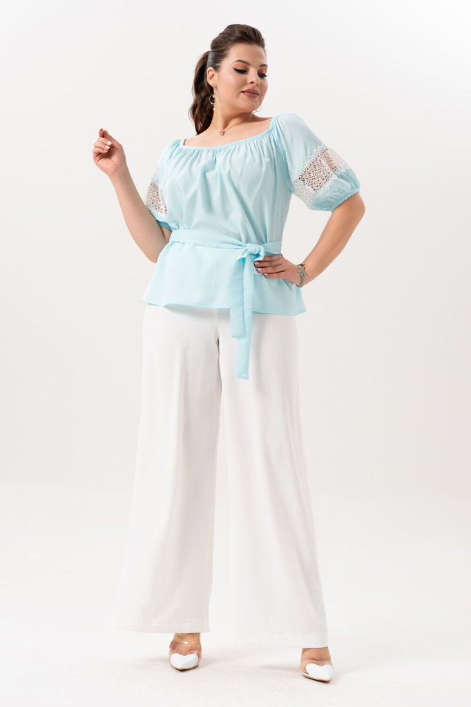 Состав: Вискоза-100%; Блузка женская с кружевными вставками – это идеальный выбор для создания стильных и комфортных образов на каждый день. Изготовленная из 100% вискозы, она невероятно приятна к тел... Показать описаниеу, дарит ощущение легкости и комфорта в течение всего дня. Стойка придает модели женственности и элегантности, рукава длины ? на спущенной пройме дают свободу движения, а свободный крой позволяет чувствовать себя комфортно и уверенно в любой ситуации. Блузка застегивается на пуговицы, что добавляет ей классический и утонченный вид. Таблица измерений изделия в готовом виде М 5034 Наименование измерений/размер 48 50 52 54 56 58 60 62 64 Ширина по линии груди 57 59 61 63 65 67 69 71 73 Ширина по линии низа 55 57 59 61 63 65 67 69 71 Длина изделия по спинке 64 64 64 64 64 64 64 64 64 Длина рукава от горловины 48 48 48 48 48 48 48 48 48 Допустимые отклонения +-1-1,5 см