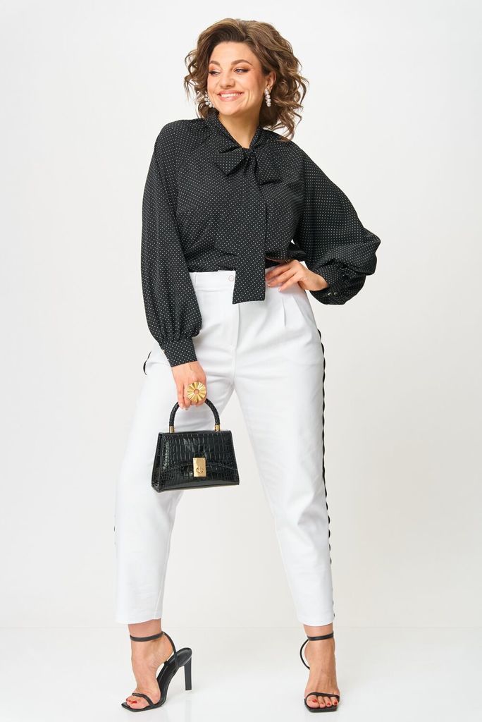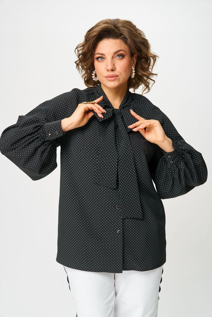 Состав: ПЭ-100%; Элегантная женская блузка из чёрного крепа в белый горошек - классического кроя, с воротником-аскот и эффектным длинным рукавом покроя реглан на манжете. Блузка с застёжкой спереди на... Показать описание пуговицы, с V-образной горловиной и воротником-стойкой с удлинёнными концами, которые завязываются на бант. Модная блузка станет любимой вещью в вашем гардеробе, поможет создать строгий, но при этом стильный образ, прекрасно сочетается с брюками, юбками и может носиться как самостоятельный предмет гардероба или под жакет, жилет, кардиган. Таблица измерений изделия в готовом виде М 5038 Наименование измерений/размер 50 52 54 56 58 60 62 64 Ширина по линии груди 54 56 58 60 62 64 66 68 Ширина по линии бёдер 57 59 61 63 65 67 69 71 Длина изделия по спинке 68 68 68 68 68 68 68 68 Длина рукава от горловины 75 75 75 75 75 75 75 75 Допустимые отклонения +-1-1,5 см