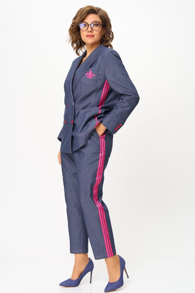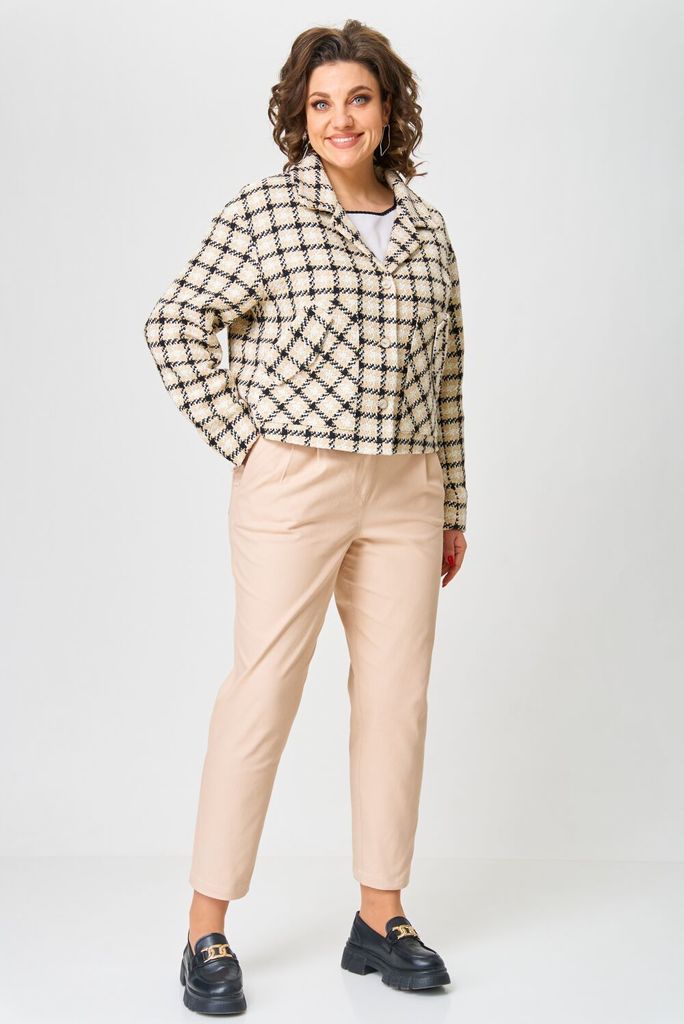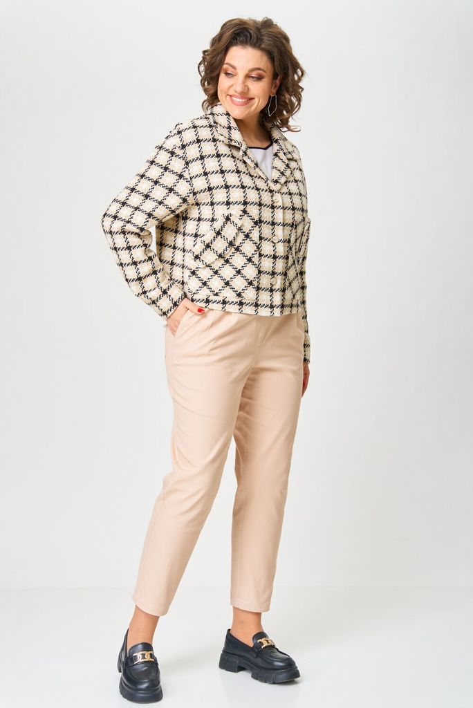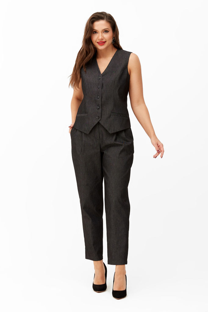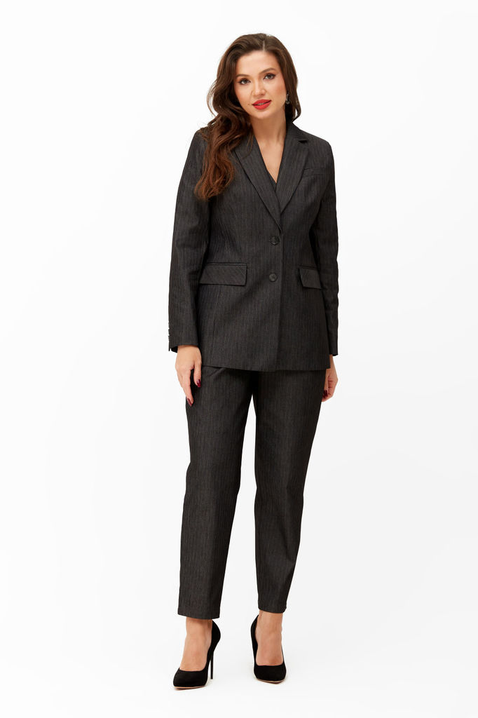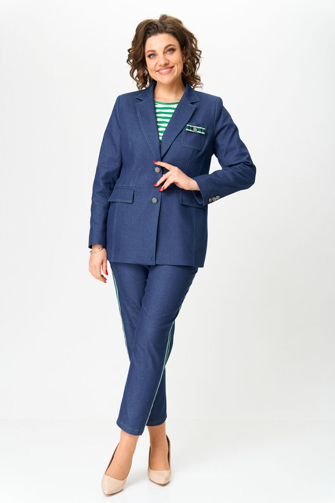 Состав: ПЭ-5%; Хлопок-95%; Жакет женский полуприлегающего силуэта, выполнен из плотного джинса в полоску. Жакет с центральной застежкой на петли и пуговицы, с пиджачным воротником, с втачными рукавами... Показать описание. Перед с нагрудными вытачками, отрезными бочками, прорезными карманами «в рамку» с клапаном и прорезным с листочкой. Спинка с отрезными бочками и средним швом. Рукава двухшовные со шлицей. Наименование измерений/размер 44 46 48 50 52 54 56 58 60 Ширина по линии груди (жакет) 49 51 53 55 57 59 61 63 6 Ширина по линии бедер 52 54 56 58 60 62 64 66 68 Длина по спинке 69 69 69 69 69 69 69 69 69 Длина рукава 62 62 62 62 62 62 62 62 62 Ширина рукава 16 17 18 19 20 21 22 23 24 Допустимые отклонения +-1-1,5 см