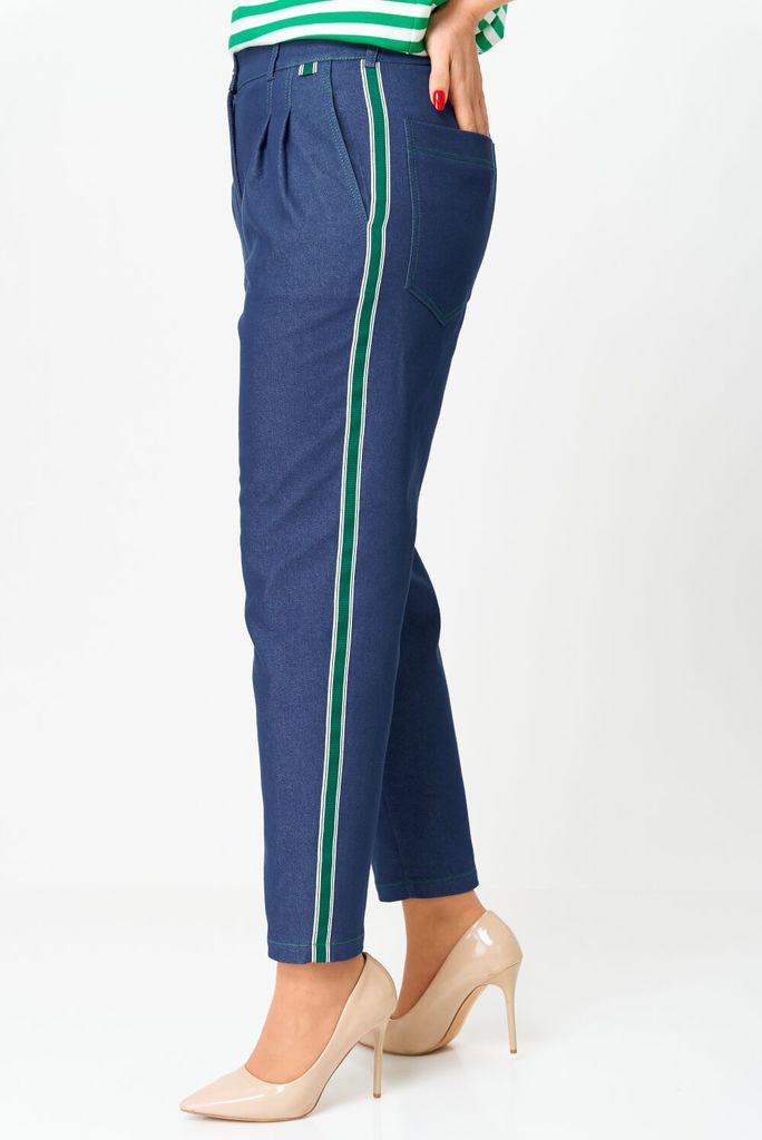 Состав: ПЭ-37%; Спандекс-3%; Хлопок-60%; Брюки женские, выполнены из джинсовой ткани. Передние половинки с вертикальными подрезами, с боковыми карманами, задние половинки с кокетками и накладными карм... Показать описаниеанами. Застёжка спереди на молнию, пояс по спинке с резинкой. По подрезам, карманам, шаговым и среднему швам проложены двойные отделочные строчки. Таблица измерений изделия в готовом виде М 2018 Наименование измерений/размер 52 54 56 58 60 62 Ширина по линии талии (в растянутом виде) 39 (48) 41 (50) 43 (52) 45 (54) 47 (56) 49 (58) Ширина по линии бёдер 56 58 60 62 64 66 Длина брюк 100 100 100 100 100 100 Допустимые отклонения +-1-1,5 см