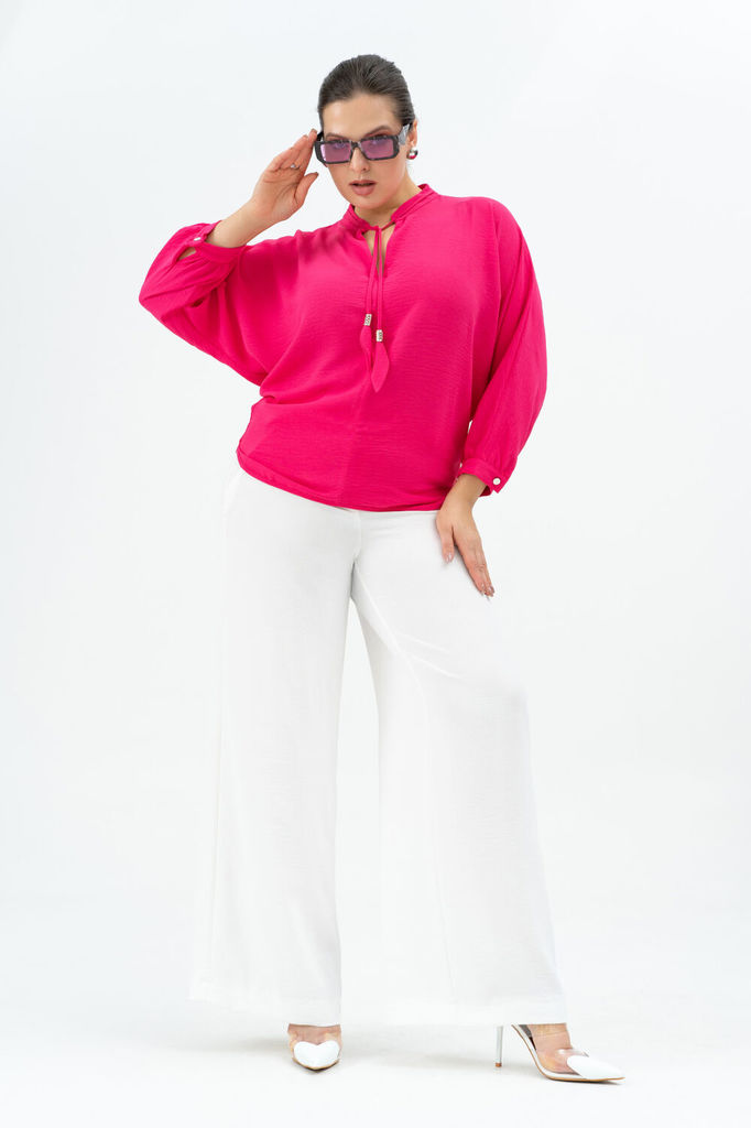 Состав: Вискоза-34%; ПЭ-64%; Спандекс-2%; Блузка женская как для праздников так и для любого мероприятия , покроя "летучая мышь" , со стойкой на которую настрочена завязка с декоративными эле... Показать описаниементами , со швом по центру полочки, рукава цельнокроёные, застёгивающиеся на петлю и пуговицу. Низ блузки по спинке длиннеее, по полочке короче.