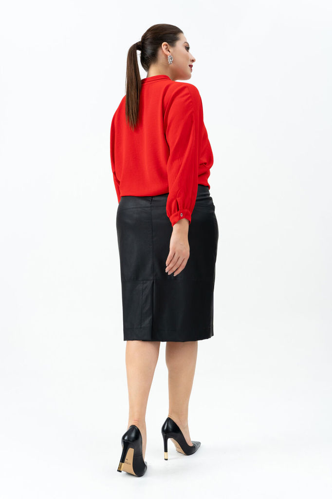 Состав: ПЭ-100%; Блузка женская прилегающего силуэта, выполнена из экокожи. Перед с подрезом ниже линии груди, с фигурным вырезом горловины, спинка со швами и застежкой на тесьму-молнию. Рукав одношов... Показать описаниеный из тонкой, воздушной органзы, по низу рукава манжет. Таблица измерений изделия в готовом виде М5026 Наименование измерений/размер 44 46 48 50 52 54 Ширина по линии груди 43 45 47 49 51 53 Ширина по линии низа 45 47 49 51 53 55 Длина по спинке 30 30 30 30 30 30 Длина рукава 77 77 77 77 77 77 Допустимые отклонения +-1-1,5 см