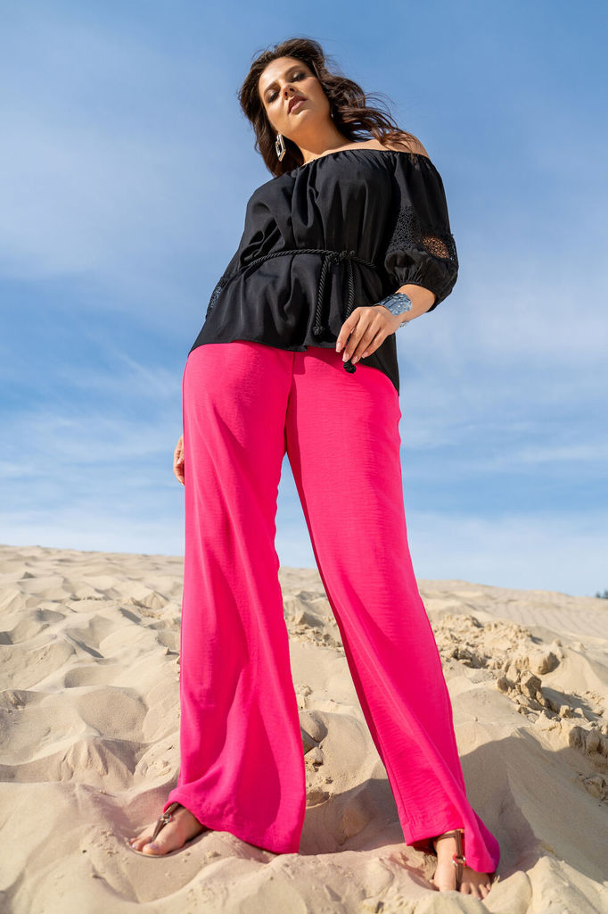 Состав: ПЭ-100%; Брюки палаццо с разрезами— это идеальный выбор для тех, кто ценит комфорт и стиль. Они выполнены из тонкого лёгкого атласа, который приятно ощущается на коже. Женские широкие прямые б... Показать описаниерюки свободного кроя обеспечивают идеальную посадку и свободу движений, делая их подходящими как для повседневной носки, так и для вечерних мероприятий. Модель с прямыми широкими штанинами визуально вытягивает силуэт, универсальна для любого типа фигуры, а мягкая резинка по талии гарантирует удобство и комфорт в течении всего дня. Таблица измерений изделия в готовом виде М 2030 Наименование измерений/размер 50 52 54 56 58 60 62 64 Ширина по линии талии 39 41 43 45 47 49 51 53 Ширина по линии бёдер 56 58 60 62 64 66 68 70 Длина изделия 108 108 108 108 108 108 108 108 Допустимые отклонения +-1-1,5 см