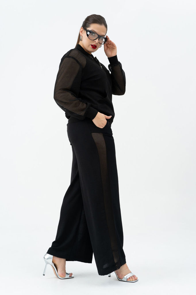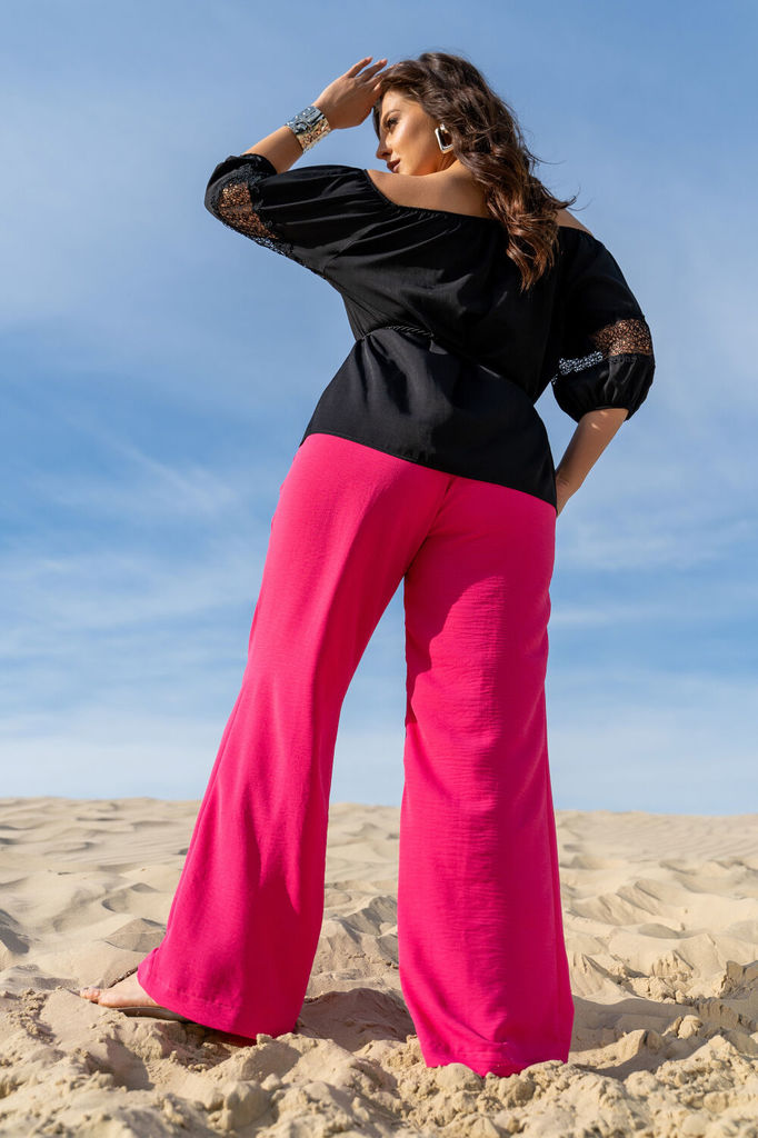 Состав: ПЭ-100%; Брюки палаццо со вставками из пайеток смотрятся очень стильно и оригинально. Праздничная прямая модель легко впишется в любой образ, они отлично сочетаются с блузками и топами из наше... Показать описанией коллекции. Высокая посадка и резинка по талии обеспечат комфорт и удобство в носке, а прямые широкие штанины зрительно вытянут силуэт, подчеркнув достоинства фигуры. Таблица измерений изделия в готовом виде М 2031 Наименование измерений/размер 50 52 54 56 58 60 62 64 Ширина по линии талии 39 41 43 45 47 49 51 53 Ширина по линии бёдер 56 58 60 62 64 66 68 70 Длина изделия 108 108 108 108 108 108 108 108 Допустимые отклонения +-1-1,5 см